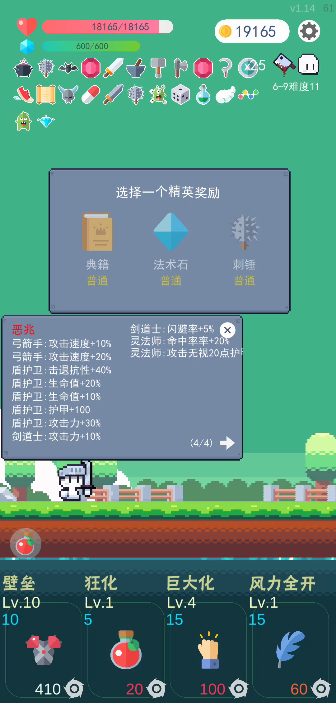 战士效率很高啊 装备:海盗剑+随意 开局多拿壁垒,有圣光拿一级 吃糖味,刺甲,剑魂都可以 出了狂化基本无敌了,巨大,风力 前期技能:壁垒,圣光,随意,等着吃掉 后期技能:壁垒,狂化,风力,巨大职业鬼剑士也可以 boss道具:蘑菇,红宝石足矣,咒术书最 小道具:蝙蝠(放毒减少敌人攻击),跑鞋(加速追怪),战斧(加60暴击伤害) 重点来了,女神祝福: 每次受击加伤0.2%,这个最重要,这就是战士的效率,其次加伤害,其他点一级也行。 战士攻击是群伤,速度快加高伤害就足够了,不需要攻击技能。 吃糖味提供了暴击,狂化提供了吸血,足够了。 前期鞋子+圣光,一套下来怪也没了。