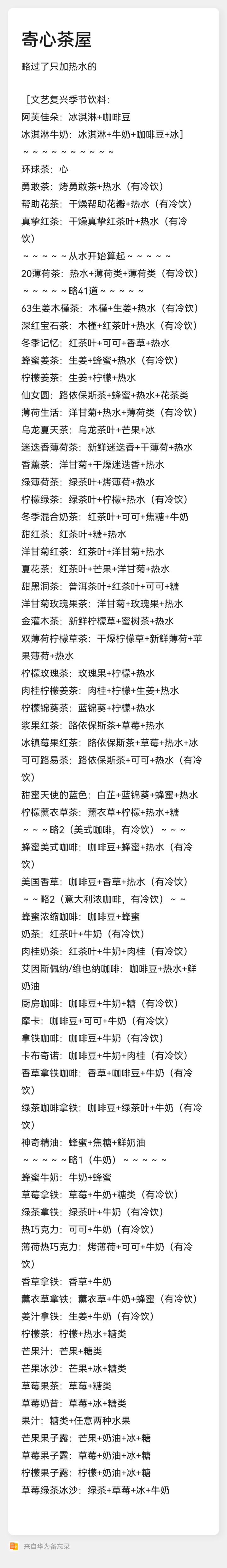 20薄荷茶:热水+薄荷类+薄荷类(有冷饮)
