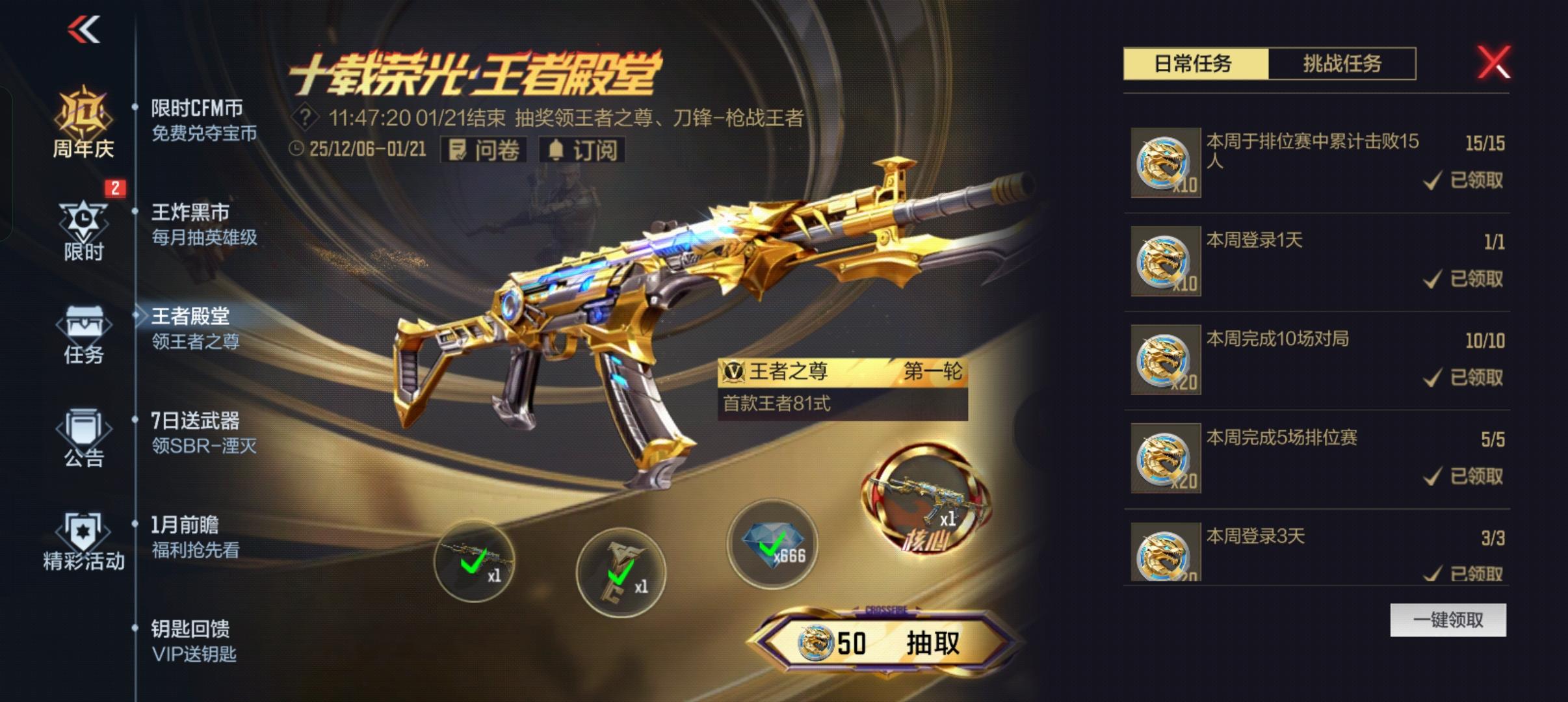 新手刚入坑任务拉满了还差一抽,最后一天没别的办法了吗