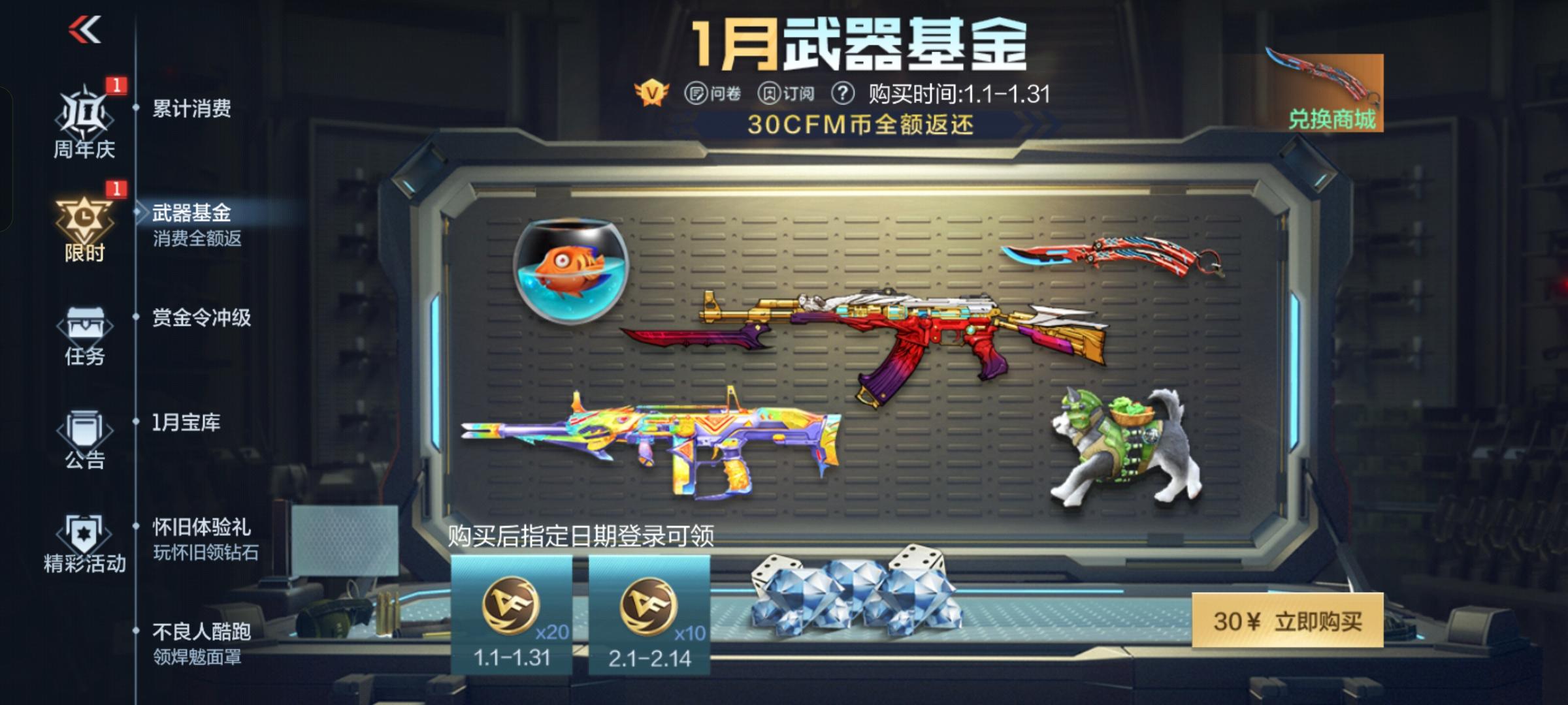全服领300春节限时CFM币,可兑换五大氪金夺宝抽奖币!