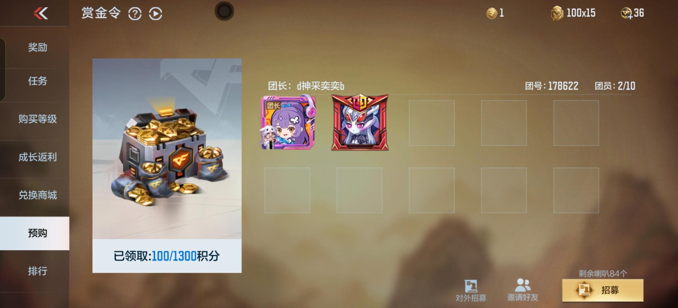赏金令预购 安卓q团号821219,最后几个位置吃满奖励,速度