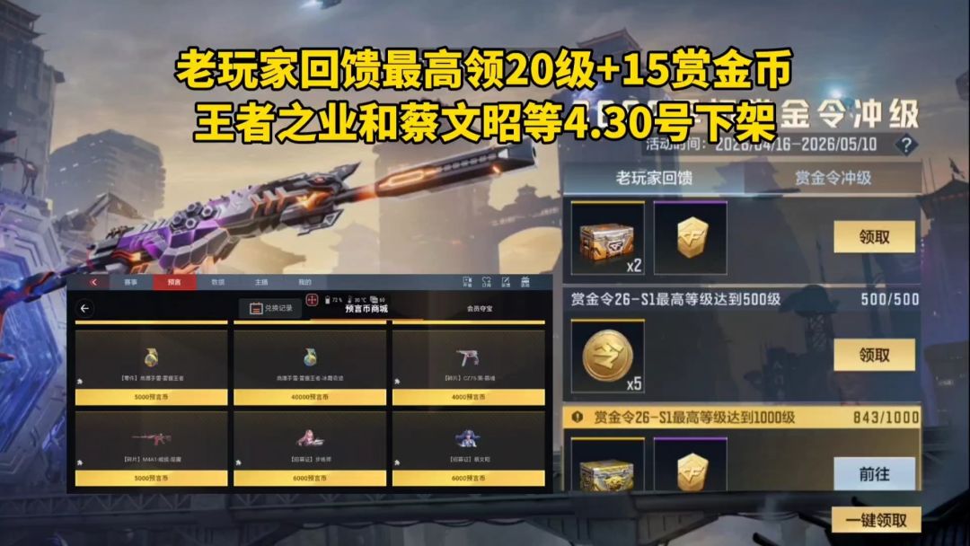 S2老玩家回馈上线,王者之业和蔡文昭等4.30号下架!