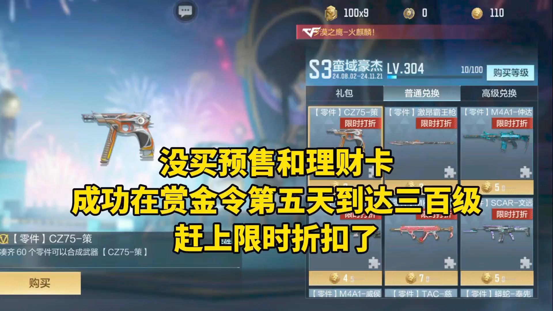 没买预售和理财卡,成功在赏金令第五天到达三百级,赶上兑换折扣