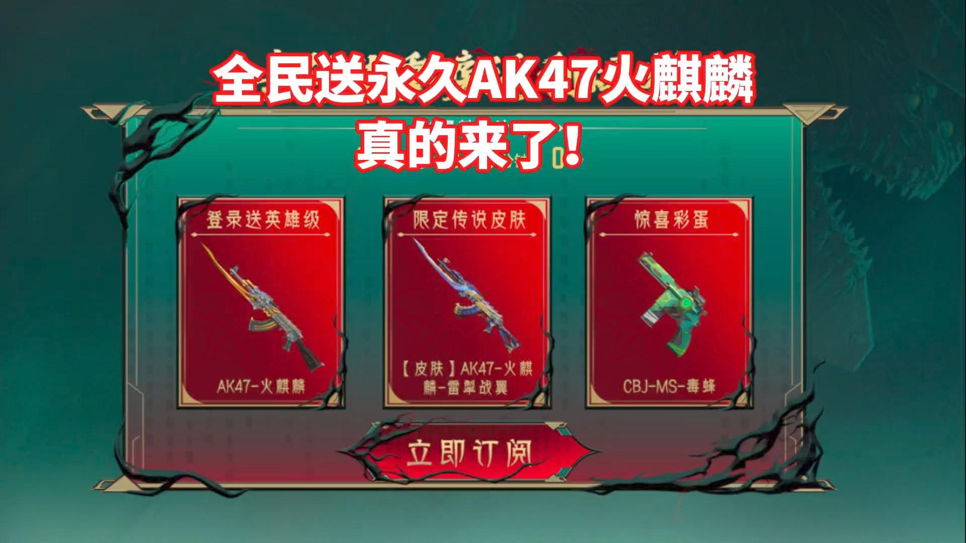 全民送永久AK47火麒麟和雷掣战翼皮肤,毒蜂冲锋枪钻石抽取?