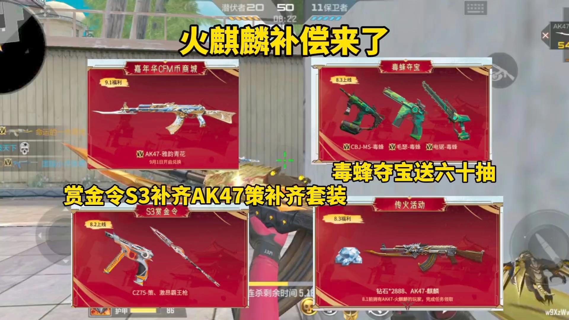 火麒麟补偿来了,毒蜂夺宝送六十抽,赏金令补齐AK47策套装!