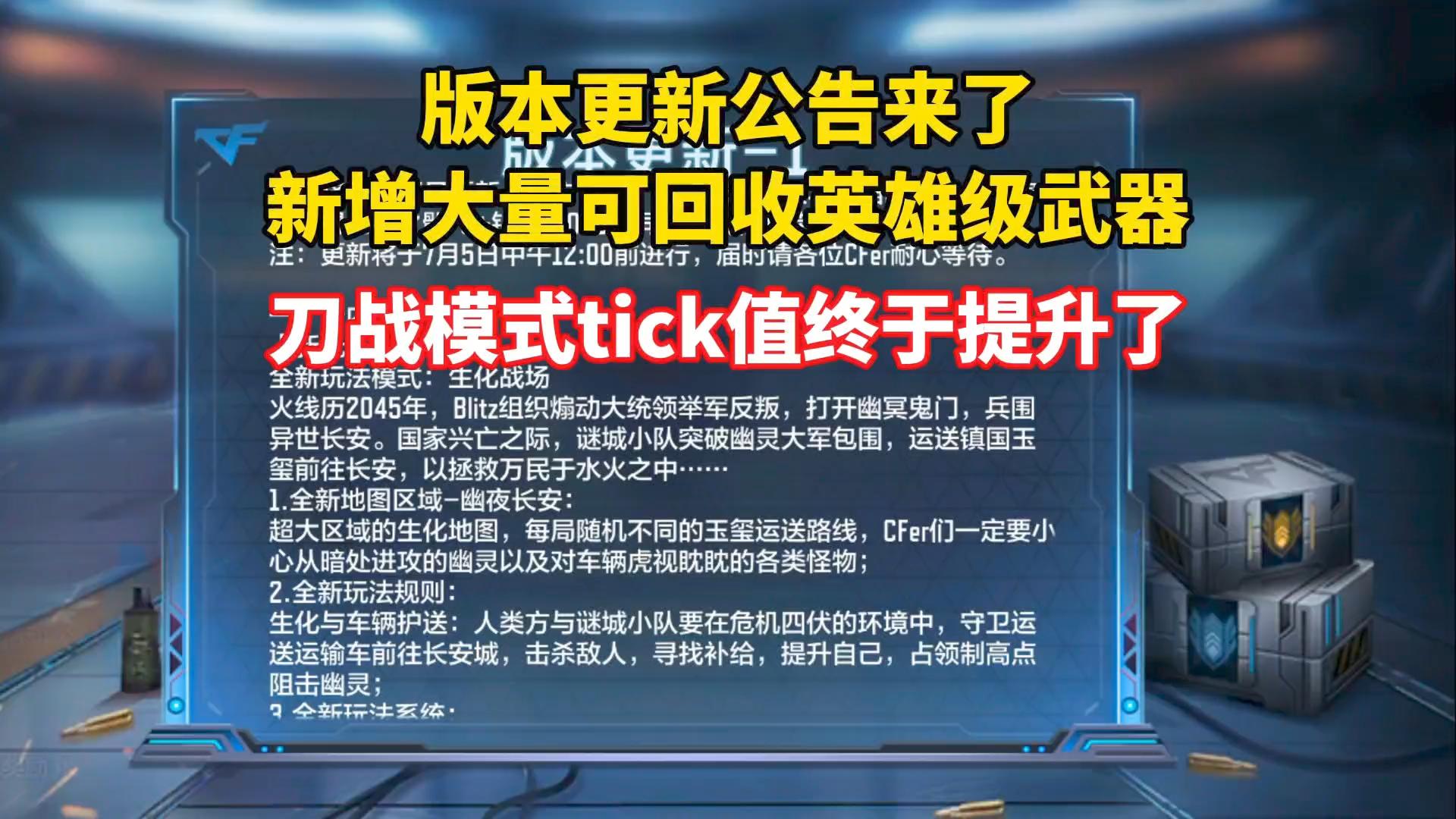 新增大量可回收英雄级武器,刀战模式tick值终于要提升了!