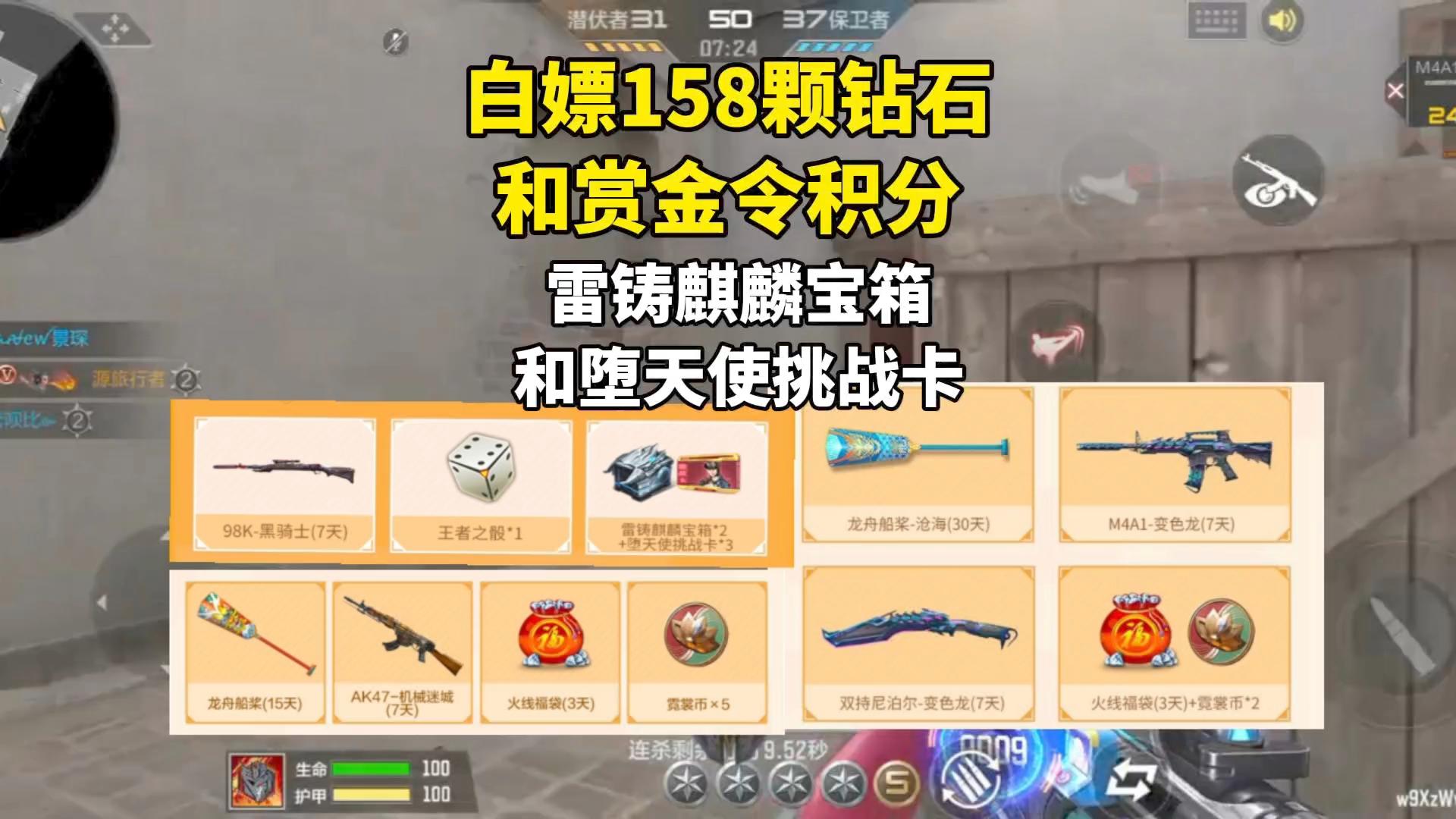 白嫖158颗钻石和赏金令积分,还有雷铸麒麟宝箱和堕天使挑战卡