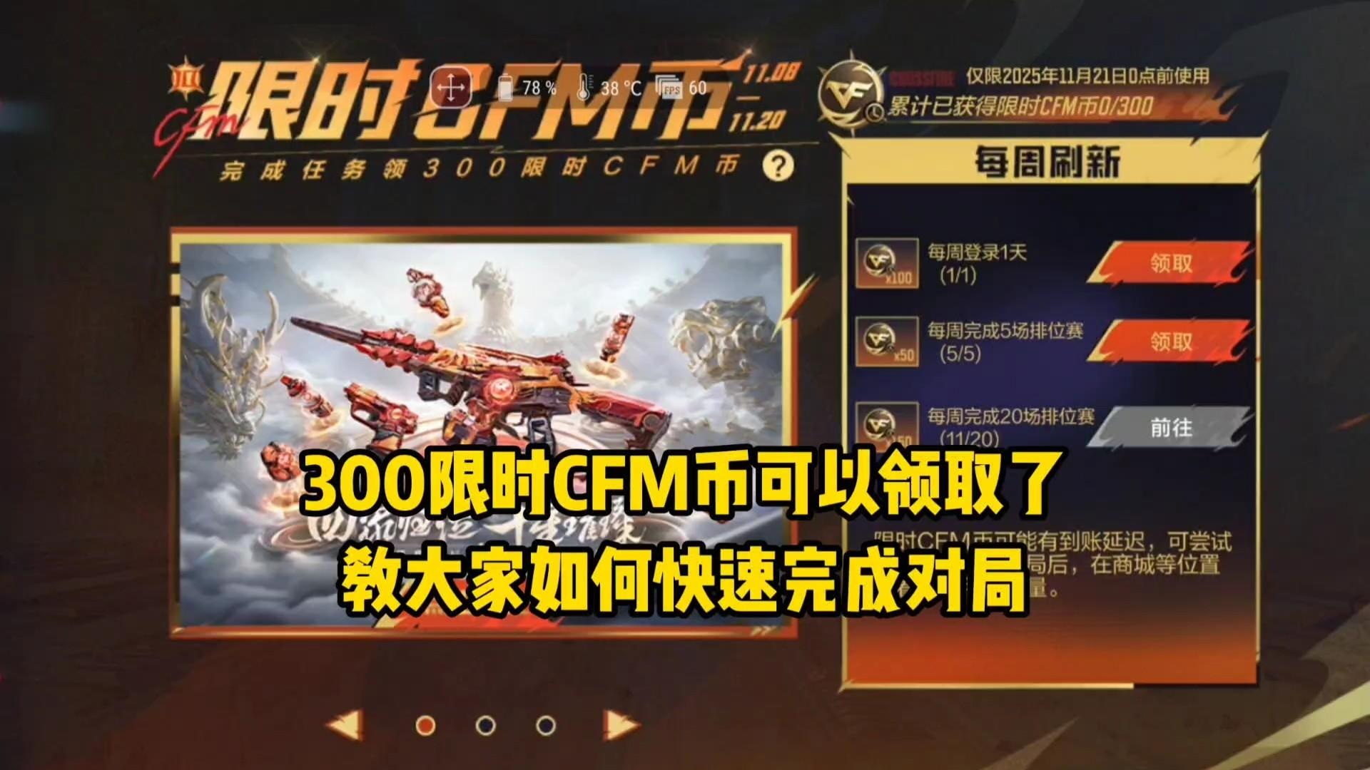 300限时CFM币可以领取了,教大家如何快速完成对局!