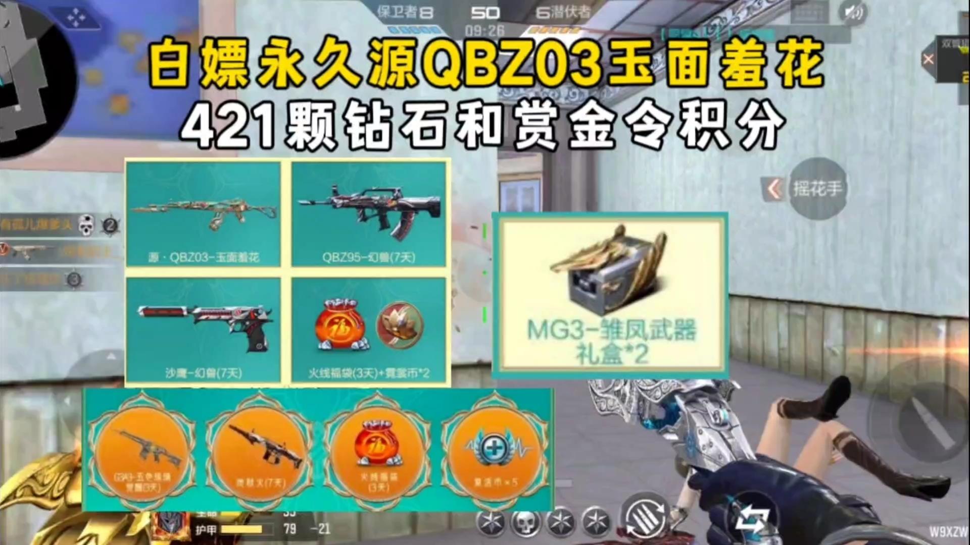 白嫖永久源QBZ03玉面羞花,421颗钻石和赏金令积分!