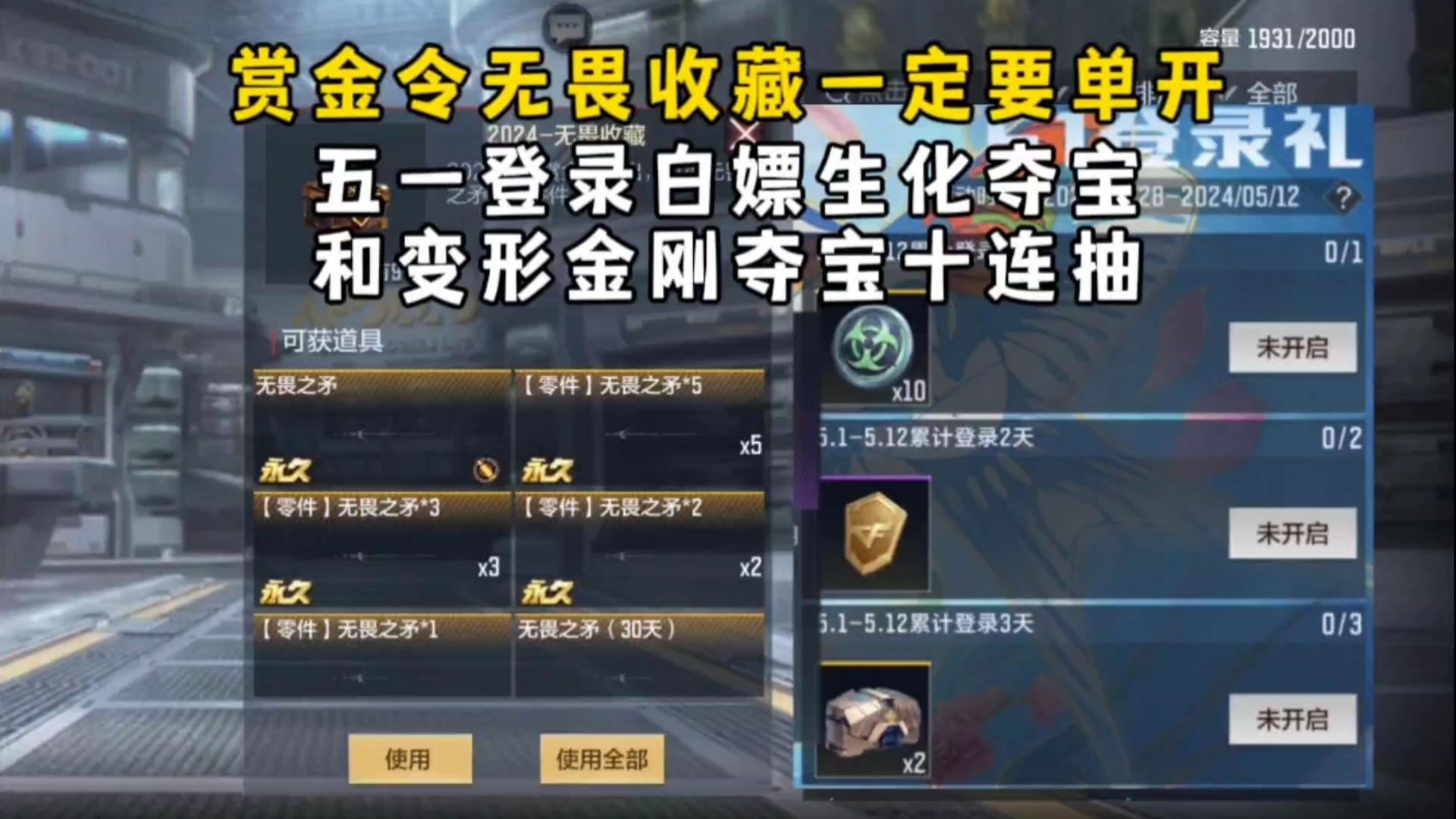 无畏收藏一定要单开,五一登录白嫖生化夺宝和变形金刚夺宝十连抽