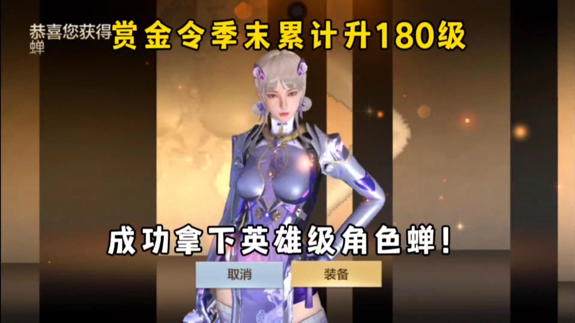 赏金令季末累计升180级,成功拿下英雄级角色蝉,只花了三十