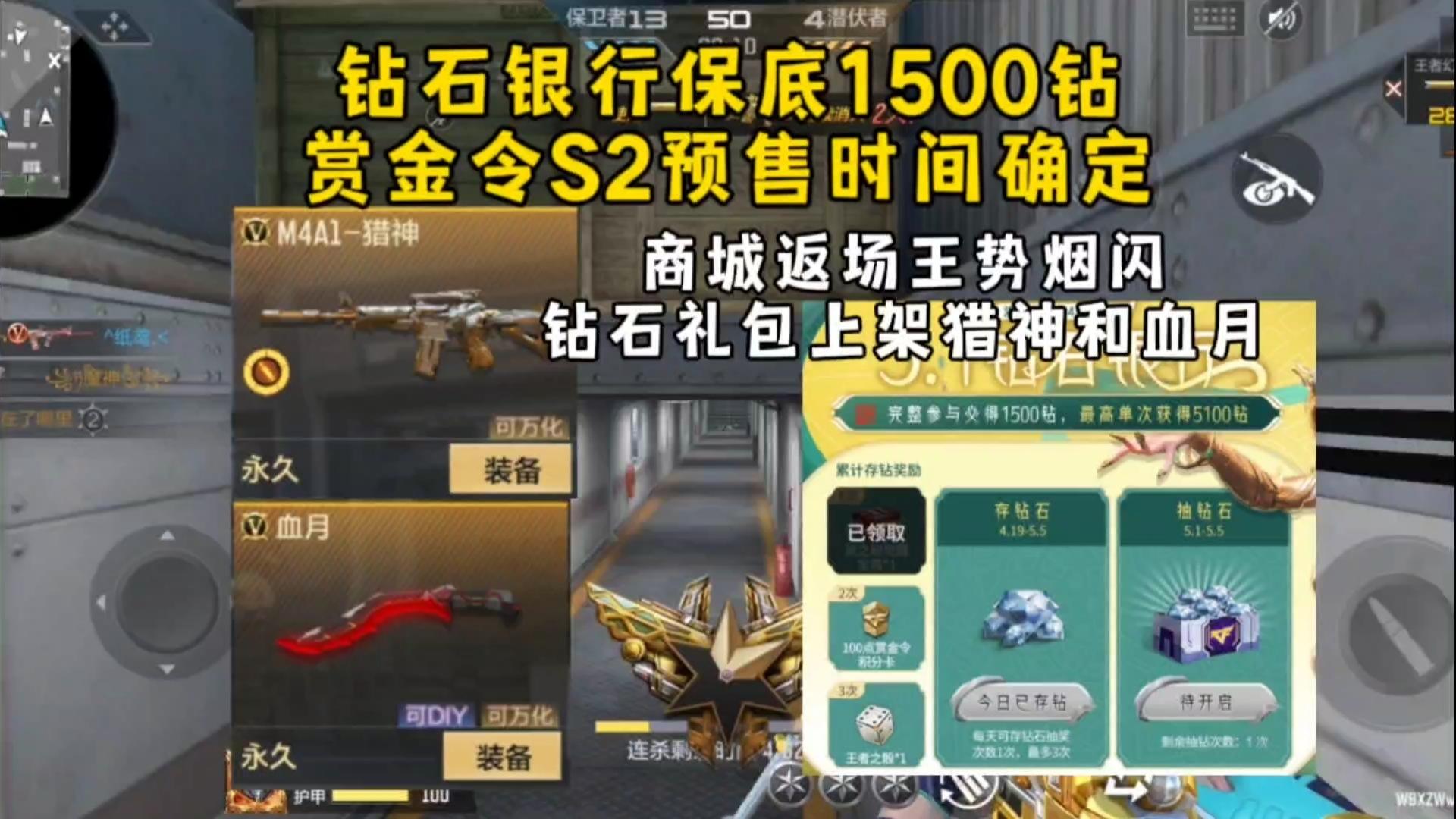 赏金令S2预售延迟,商城返场王势烟闪,钻石礼包上架猎神和血月