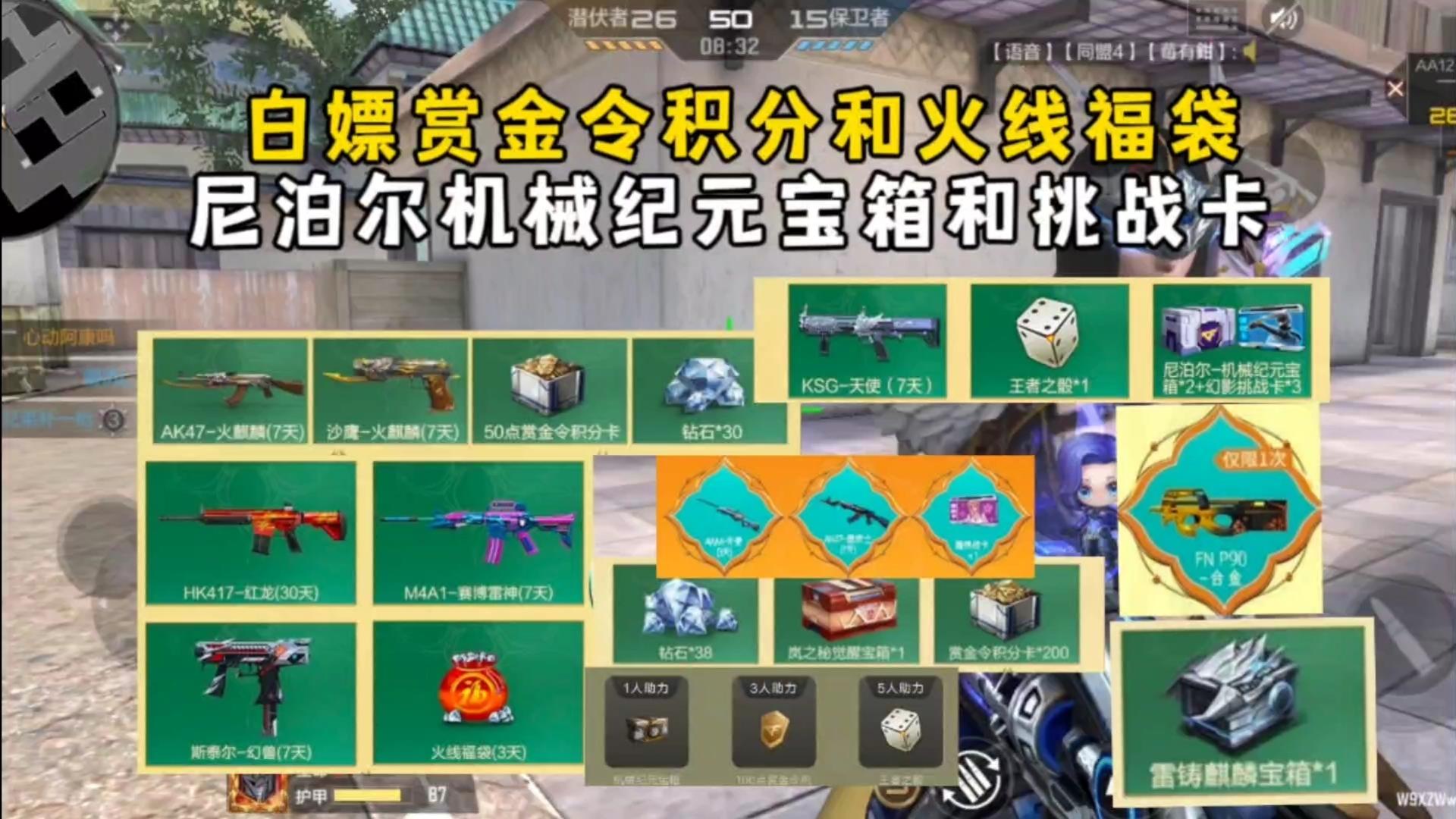 白嫖赏金令积分和火线福袋,还有尼泊尔机械纪元宝箱和限时火麒麟