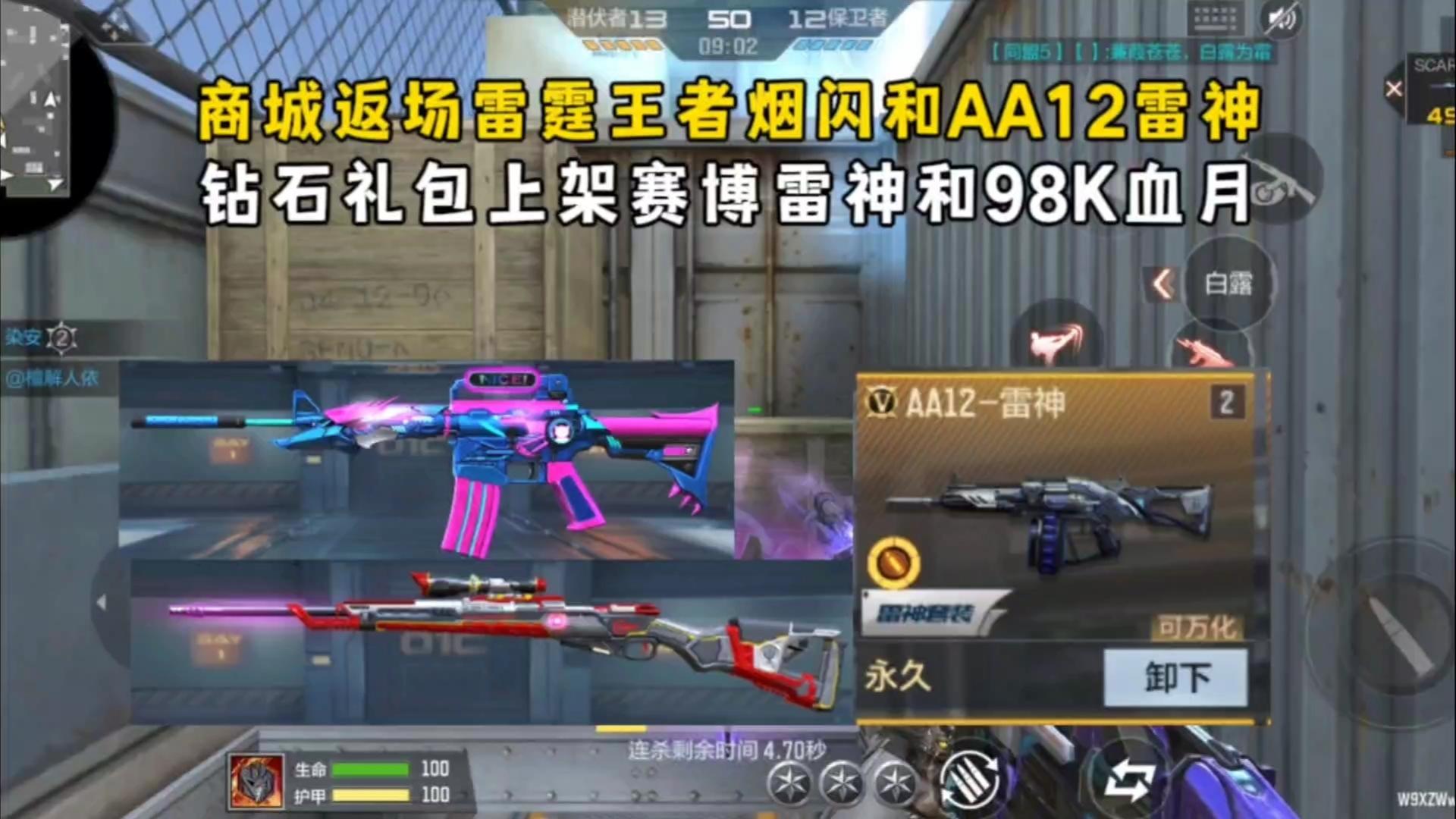 雷霆王者烟闪返场商城,钻石礼包上架赛博雷神和98K血月!