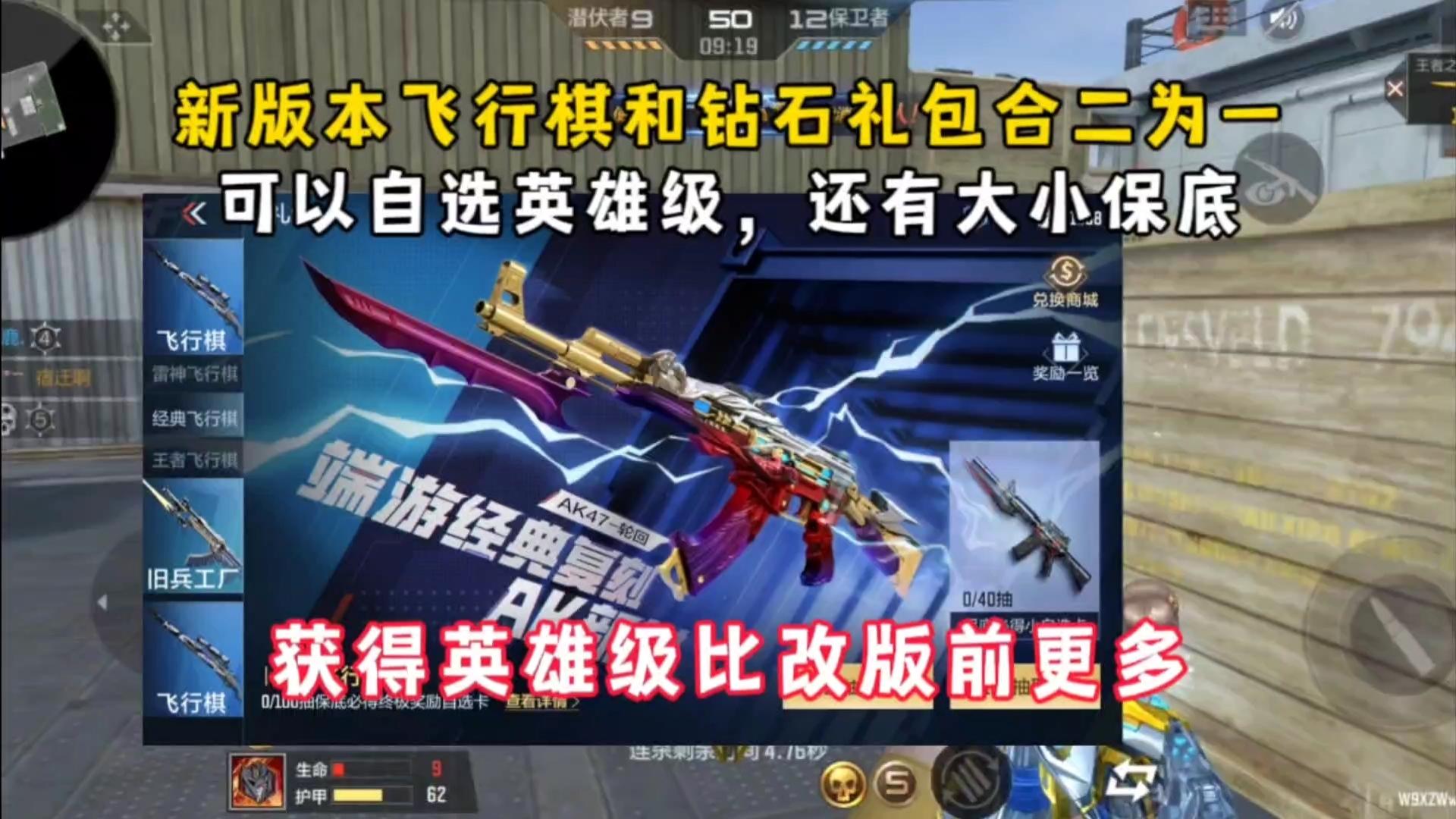 新版本飞行棋和钻石礼包合二为一,可以自选英雄级,还有大小保底