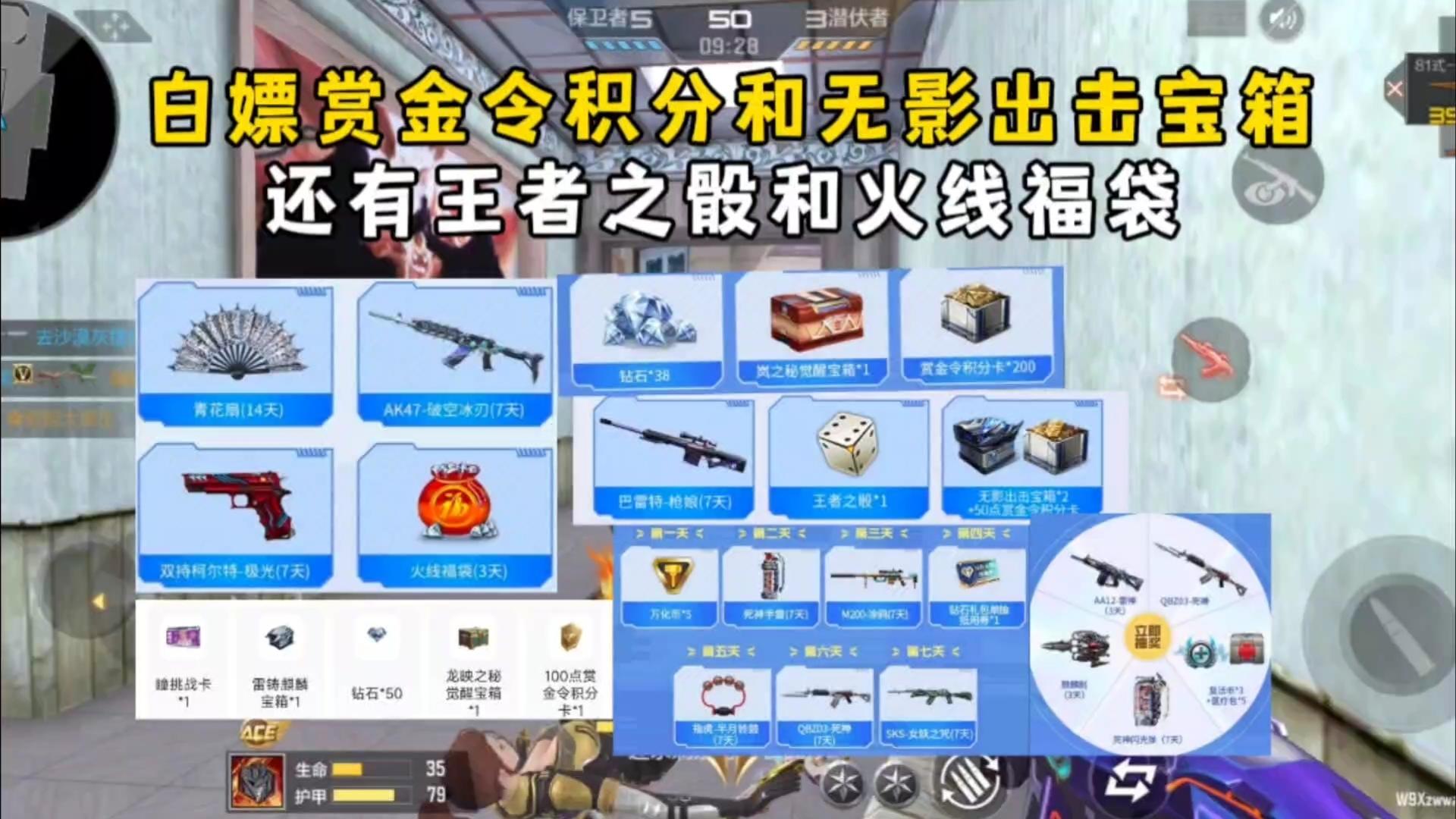 白嫖赏金令积分和无影出击宝箱,还有火线福袋和王者之骰!