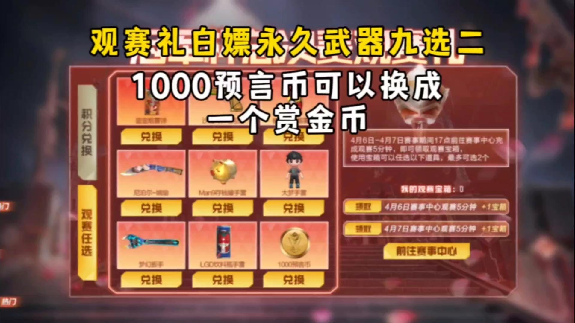 观赛礼白嫖三把永久武器,1000预言币可以换成一个赏金币!