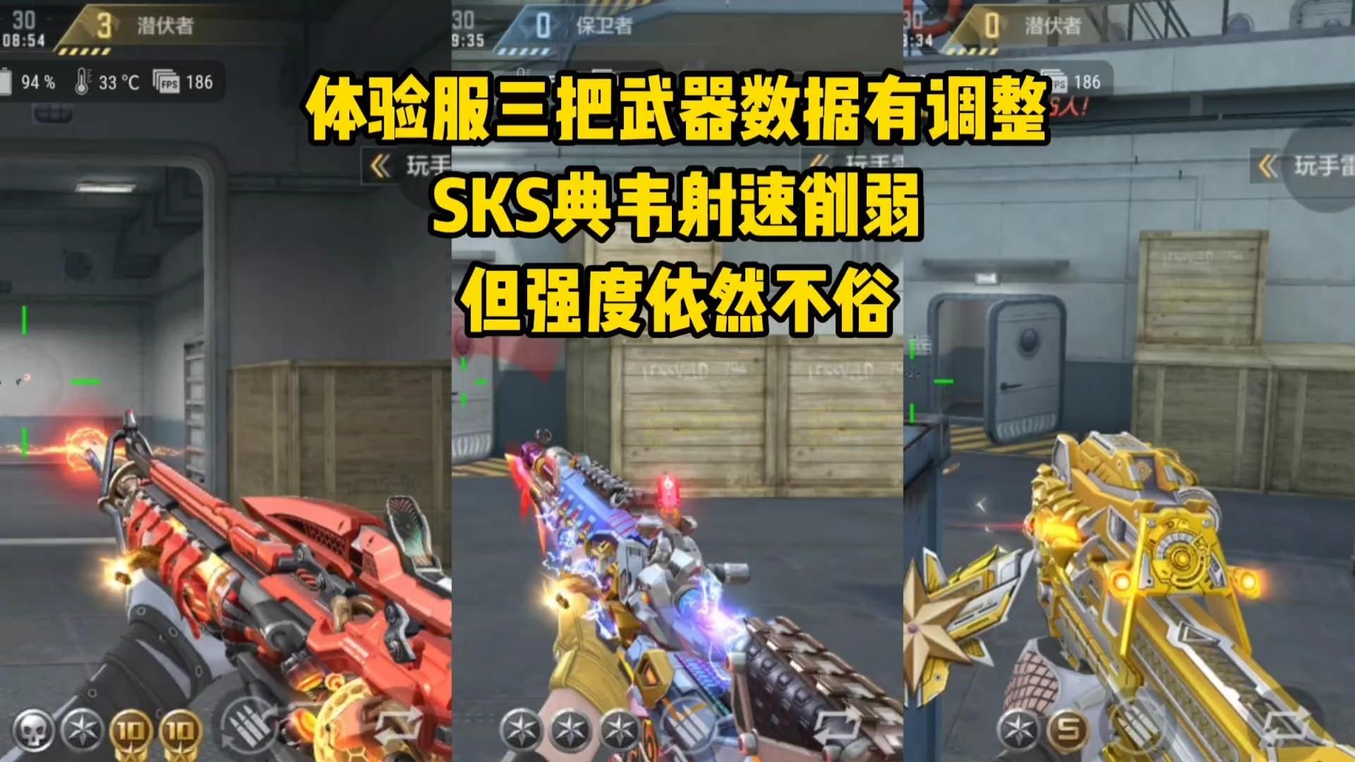 体验服三把武器数据有调整,SKS典韦射速削弱,但强度依然不俗