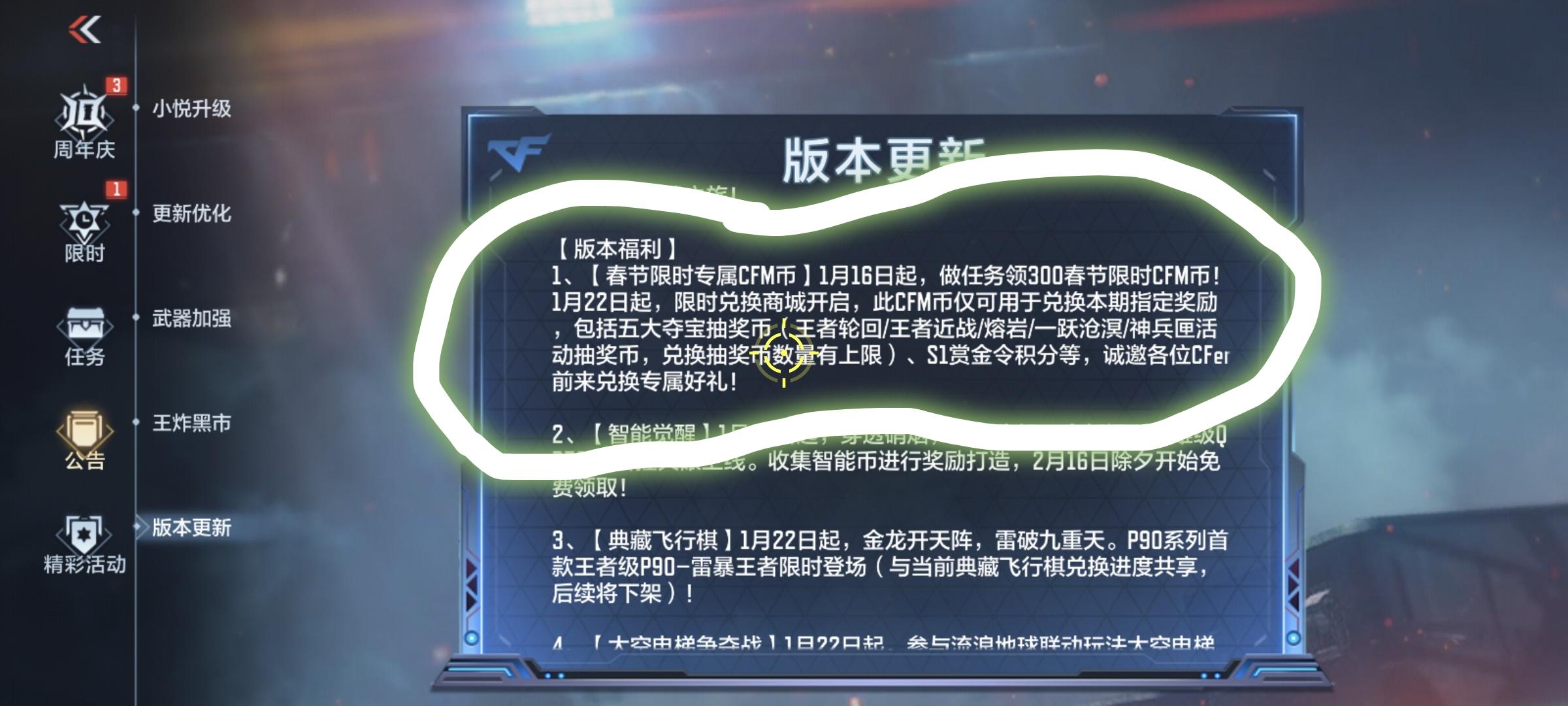 全服领300春节限时CFM币,可兑换五大氪金夺宝抽奖币!