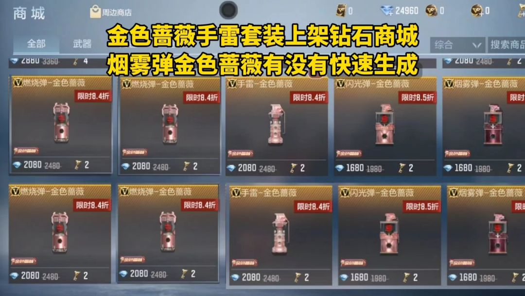 金色蔷薇手雷套装上架钻石商城,烟雾弹金色蔷薇有没有快速生成?