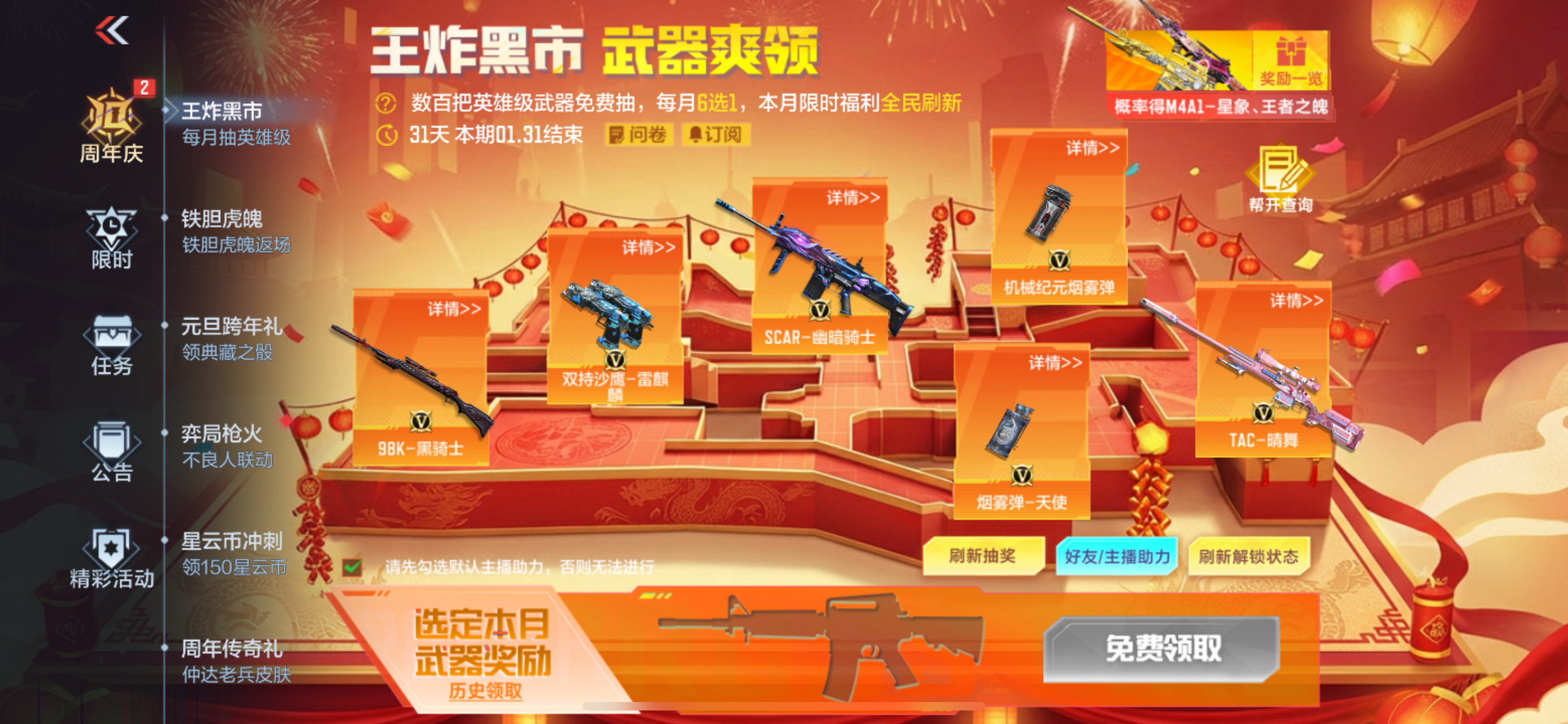 哈喽,各位CFer大家好呀!2026年即将到来,在这辞旧迎新之际,CF手游推出新年版王炸黑市活动,所有玩家可邀请好友助力刷新一次奖励,一起来看看吧!【活动简介】王炸黑市活动自2025年9月上线以来就受到了玩家们的广泛关注,每月6选1固定能获得一款英雄级武器的活动机制对玩家们来说非常友好,尤其是在2025年12月的十周年版本中可直接全领6把英雄级武器,更是将王炸黑市活动推向了高潮。本次新年版王