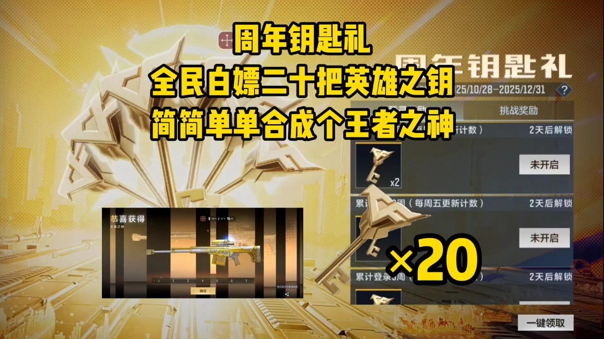 周年钥匙礼全民白嫖二十把英雄之钥,合成王者之神要多少钥匙?