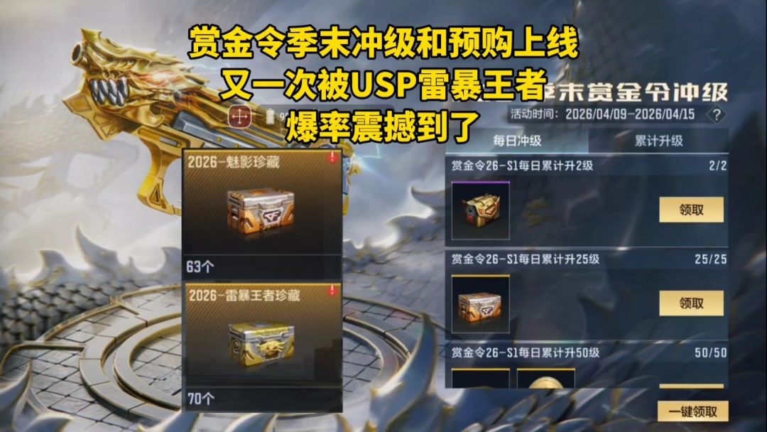 赏金令季末冲级和预购上线,又一次被USP雷暴王者爆率震撼!