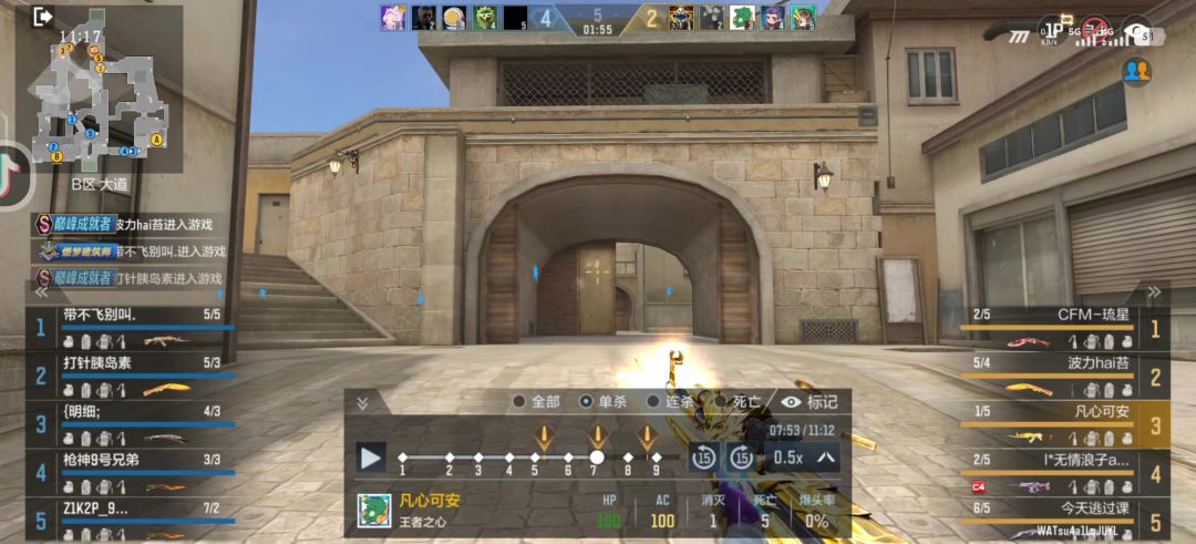 很简单,你把你家3号“星辰”的本回合视角拿出来就知道这人是不是透视了。因为他跳出去的时候,先精准定位穿了几枪星辰的位置(没穿透),就立马扫了你家1号位置。你家1号应该是先开的枪,但是没有打到古飞扬,因为古飞扬右侧位移前的位置有弹道痕迹。他运气挺好的,你家1号刚开枪,他刚好位移。同时他反应挺快,看到你家1号位置立马反击并退回a点。不过你家3号星辰摸进小道漏信息了(跳箱落地声和切枪声音。这个切枪声不知道是保卫1号的,还是你家3号的,我太久没玩这个游戏了,听不好了)。这个古飞扬挺有细节的,静步摸近小道,进小道先闪身提前枪然后拉出去,走位走位。之后的击杀都是有迹可循。现在就是看星辰到A门前有没有暴露信息了,而且即使没有暴露信息,也不一定说明这个古飞扬是挂。因为一回合的异常表现可能是运气,如果近几场对局都是这样,那才大概率是透视。🤓我以前的枪法也很帅,打掉正面一个人,背身有人偷我,我瞬间大跳转身下蹲打他爆头,可惜这样的场景难以复刻。