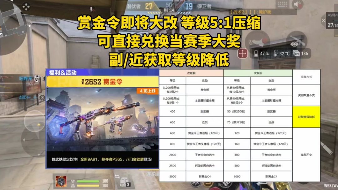 赏金令即将大改,等级5:1压缩,赛季大奖可直接兑换等…