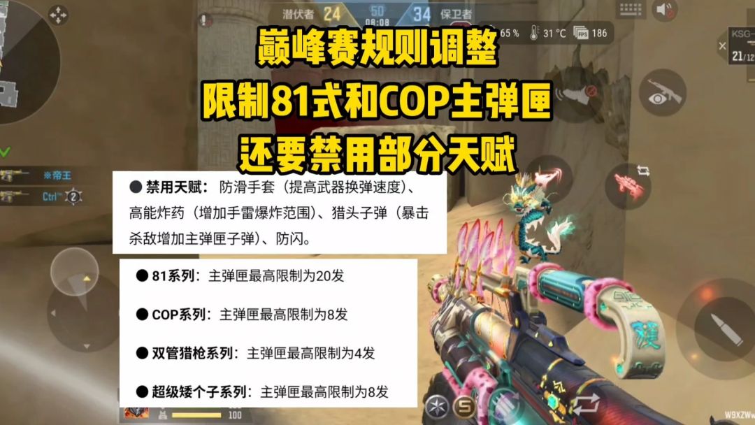 巅峰赛规则调整,限制81和COP等武器主弹匣,禁用部分天赋!