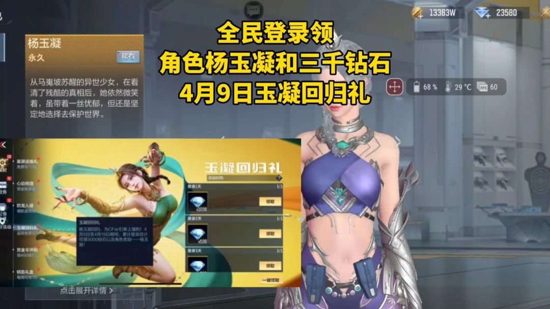 全民登录领角色杨玉凝和三千钻石,4月9日玉凝回归礼!
