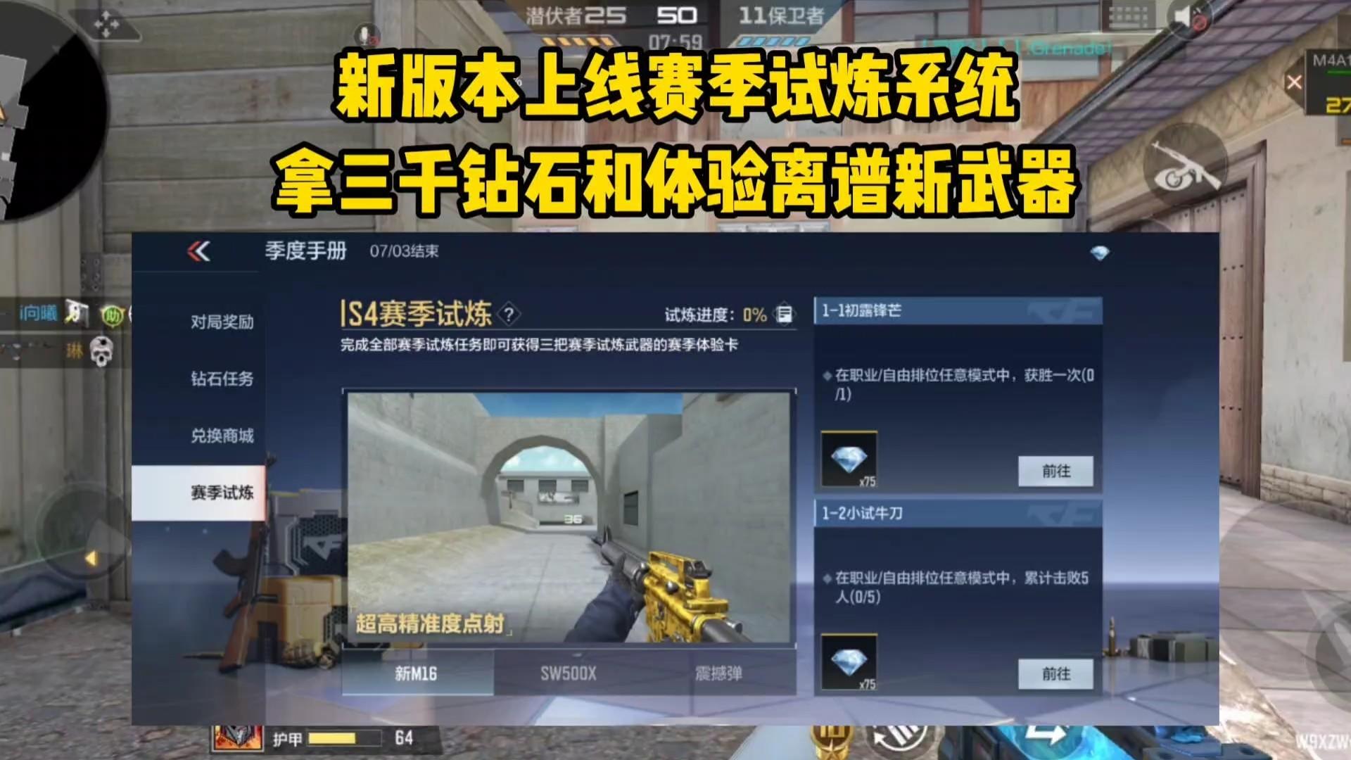 新版本上线赛季试炼系统,拿三千钻石和体验离谱新武器!