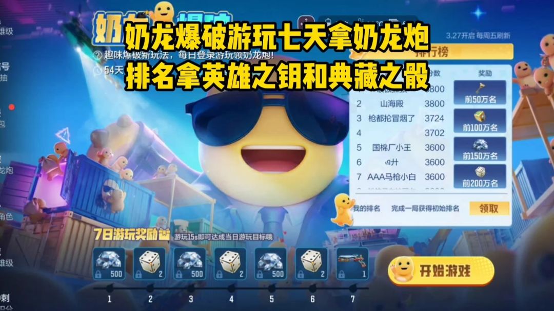 奶龙爆破游玩七天拿奶龙炮,排名拿英雄之钥和典藏之骰!
