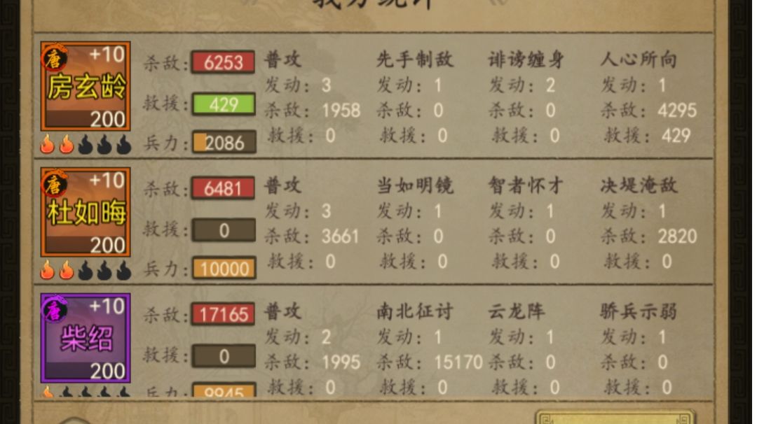 关于这个游戏真正厉害的还是属于苏威,柴绍(紫),樊梨花这一类特殊断粮武将,因为是罕见的真伤。所以月卡党玩家,可以优先选择这三个来搭配。什么叫做真伤?打个比方智力伤害收到对面智力衰减,武力伤害收到对面统御衰减。断粮可以无视对面的相对应属性变成零的状态。也就是说这几个英雄就算一千智力或者武力对面相应属性就算一百万以上,照样掉你智力应当掉的伤害😅