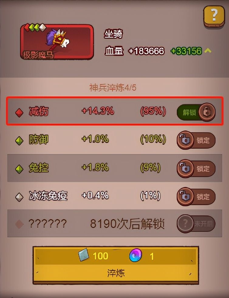 本文首发【咸王攻略组】公众号,未经授权禁止“抄袭文章”转载至其它平台。 嗨喽大家好,我是小咸,最近有很多吕布玩家在问小咸,淬炼打底属性“破甲抵抗”还是“减伤”,许多人比较纠结,今天就给大家分析一波这两个属性的利弊,希望能帮到大家,一起来看看吧~ 减伤属性打底利弊分析 优势 1、推图、爬塔、灯神、梦境。推图这方面一直都是吕布站在第一排抗伤害,减伤这时候就能体验出来了,尤其是6000关以后,小怪一个平