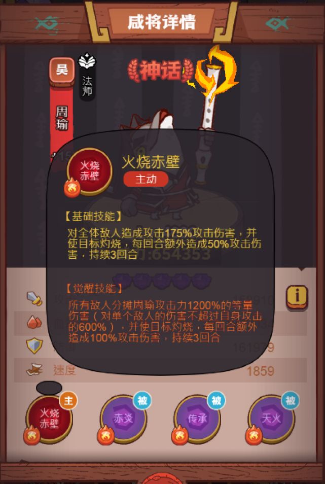嗨咯~大家好!我是布布,自从淬炼系统出来之后,吴国阵营玩家地位直线上升, 布布接下来会给家人们详细分析下吴国武将周瑜的主要内容,希望这篇攻略,能给大家带来帮助,让我们一起来看看吧~ 英雄分析 技能解析 1技能(主动技能火烧赤壁) 解析:这对全体敌人造成175%的伤害,觉醒后所有敌人均受到周瑜攻击力1200%的高额伤害50%, 由在场敌人分摊(对单个敌人造成伤害,则不超过自身攻击的600%)所以周瑜