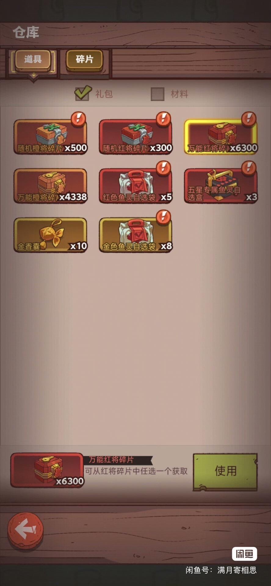 本人vip6,吕布起号,吕布满星后,诸葛紫3完成的资源(我推荐拉诸葛紫五之后再攒资源,不然竞技场被人控的生无可恋,我已经经历过了。)以下是9月29号中午(宝箱周)的进场资源 图1(着重看我的万能碎片部分,以及图签部分后面我会说),我金砖不够数,为啥我敢冒险拿金鱼,首先这惊涛可能是最后一次悬赏任务,我必须搏一搏;另外就是我手里有个王炸(648),不过最后没有用到这个王炸就拿到金鱼了。我只能说我是个踩