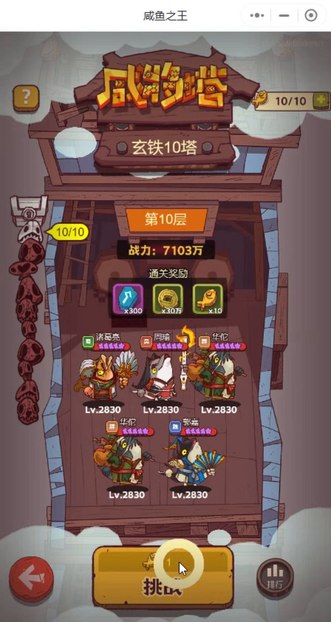 战力提升了,阵容根据攻略也调整了,还是过不了啊,呜呜呜#咸鱼之王