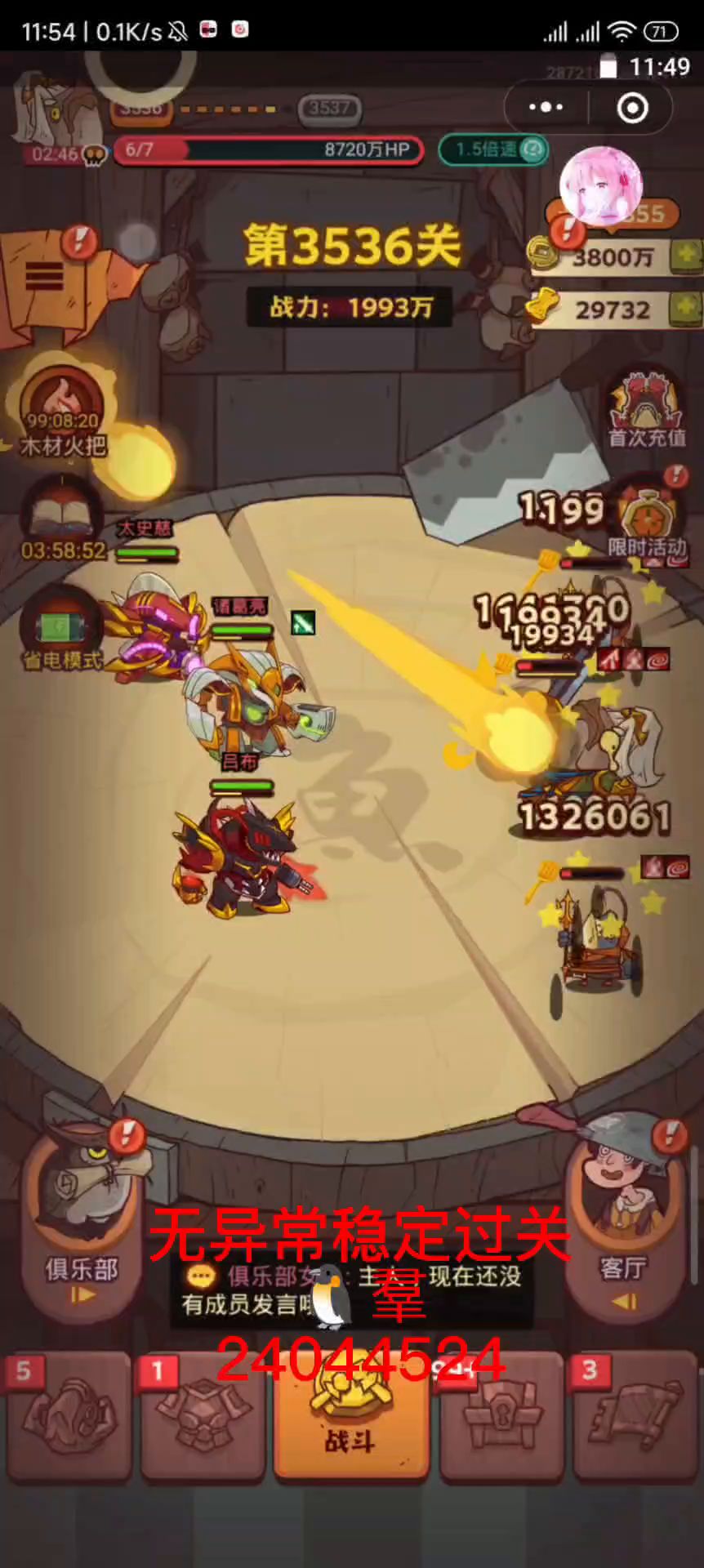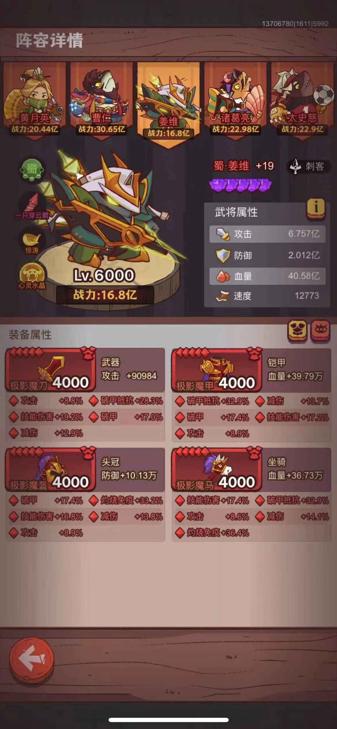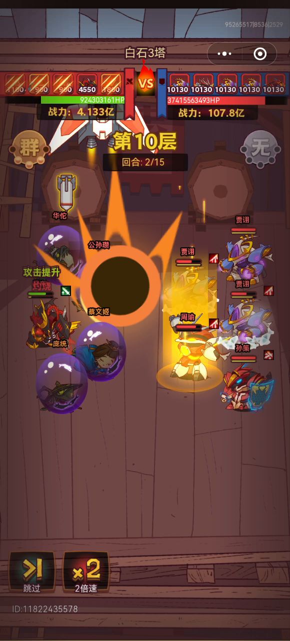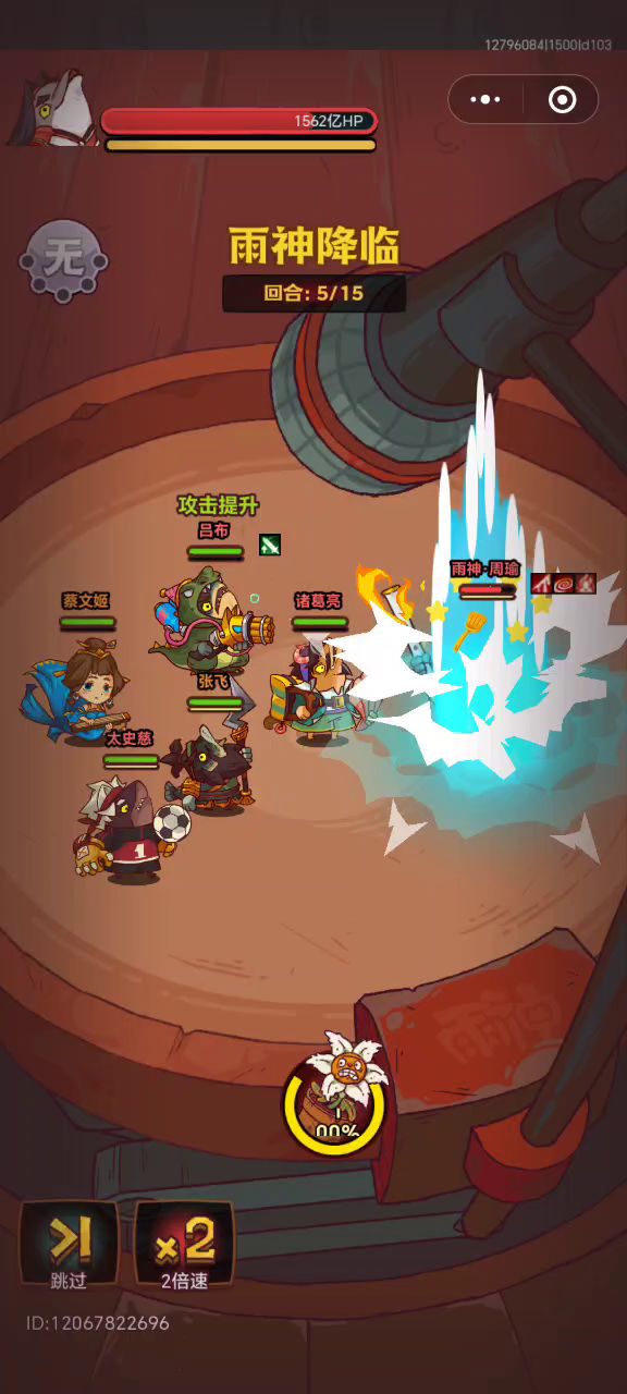 这关主打的就是碰运气打控制,因为没有次数限制所以就是无限跳过看运气,吕布赤羽,面板看我其他帖子,高级科技没点,诸葛四觉有八卦