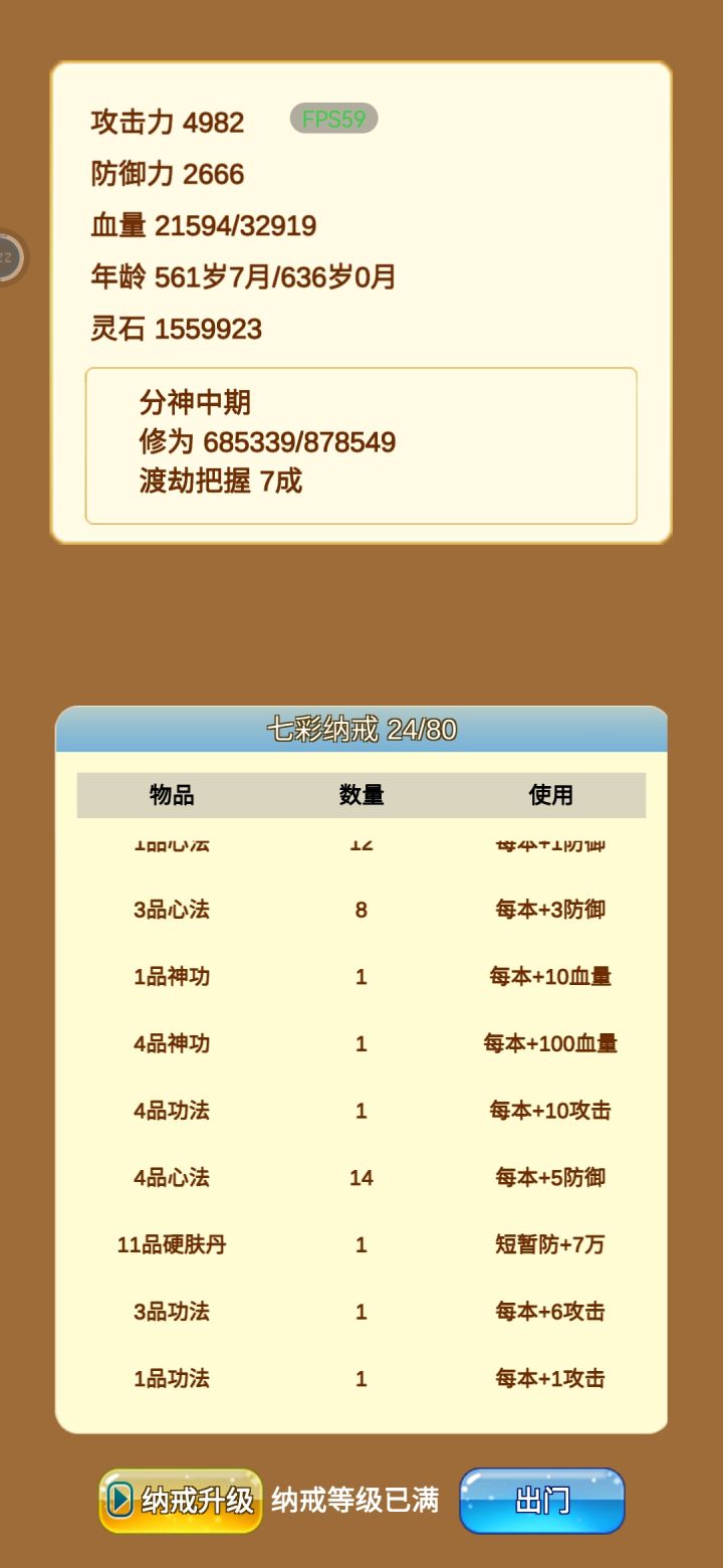 bug攻略如图,卡灵石,在一万以下就行,然后一直钓鱼,因为他掉落物品等级是随机掉落的,也就是说你还是炼器的时候就可以掉落5级6级的神器,然后直接卖掉,去购买灵丹礼包,3000灵石的那个,拉满,嘎嘎升级,注意一点就是不要乱点,每点一个地方就是一个月过去了,敌人强度按灵石来的,换句话说,当你是个拥有几十万灵石的炼气时,别人金丹大佬回过来打劫你,直接被秒,所以钱一口气花光,全用来升级