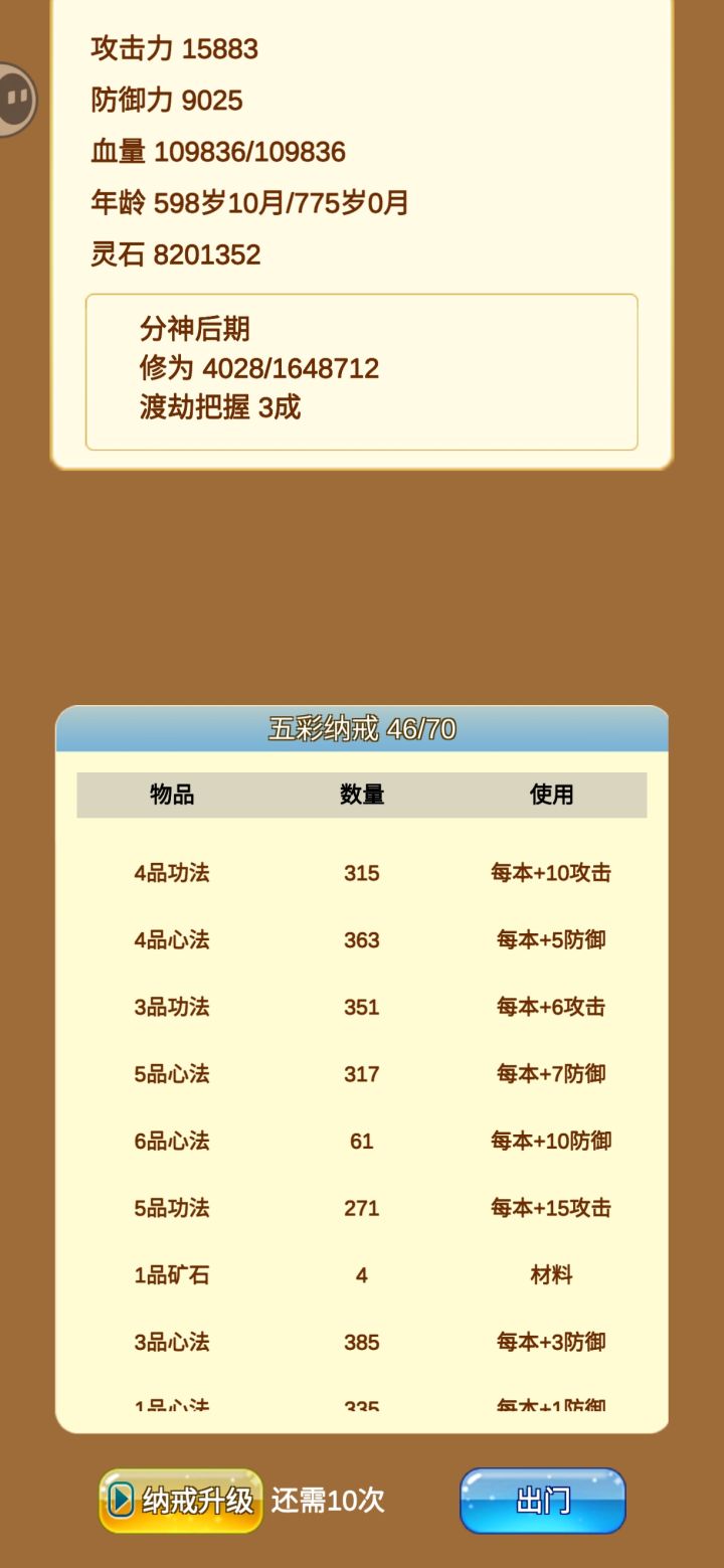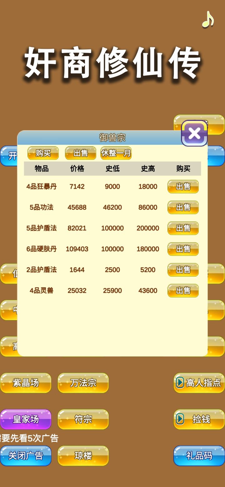 但是升级太折磨了,没有固定买灵丹和突破丹的方式。盲袋可能就金丹之前比较划算,到了金丹之后得6品才稍微效果,结果药宗的丹还要刷新,玩不了一点。正常买卖的话虽然赚的快,但我一毛不拔。正常玩的话也还是建议打劫起家,直接往高级场里面钻。纯打劫的话建议看个视频升级背包大小。
