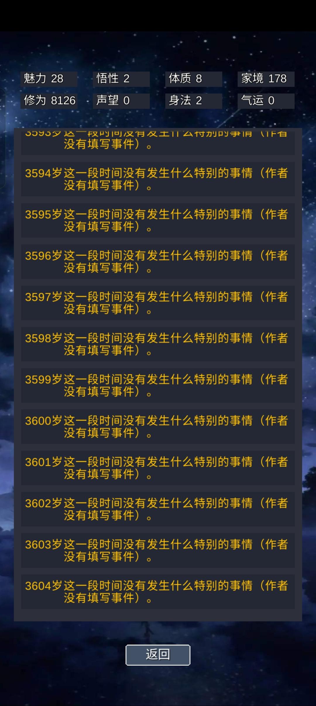 这个境界寿命的提示和完结,每次删了重进都会重新出现本来没什么问题,可是我想做寿命相关的天赋和事件,这个是按固定的境界寿命结算,必须删不能留…