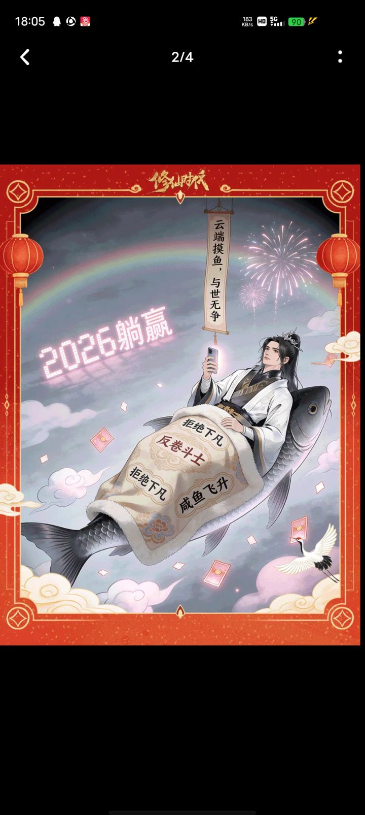 #修仙时代 #新年新状态 今年过年关主打一个“云端躺赢”拒绝下凡,反卷修仙,骑着锦鲤在云间刷手机,红包雨和烟花一起砸过来,这才是仙友该有的新年打开方式!