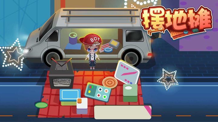 在游戏开始时分得一定的初始启动资金,凭运气掷骰子决定移动点数,到达空位可花费一定金额购买摊位,其他玩家到达属于你的摊位时需要支付一定的租金,还有不可预知的随机事件等着你。发动头脑风暴,运用交易策略,占领更多的摊位赚取租金。游戏中其他玩家资金为负时破产,剩下最后一个玩家即为胜利者。