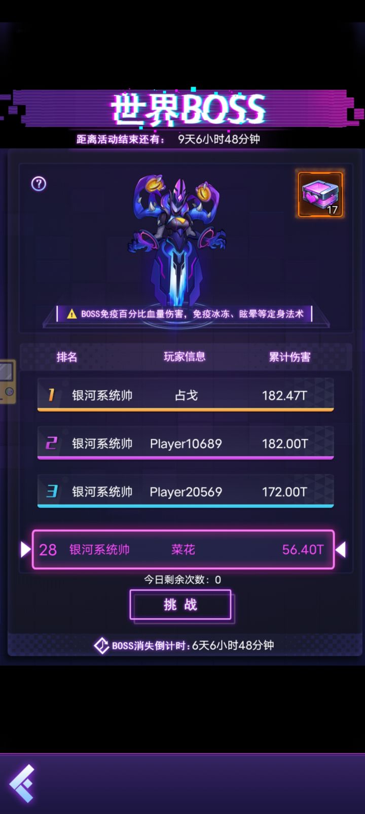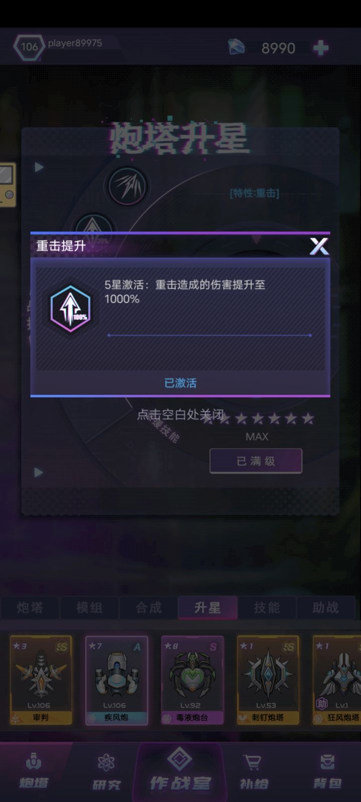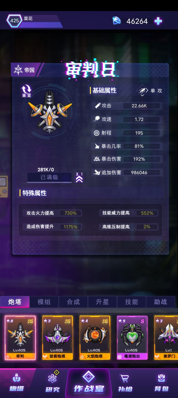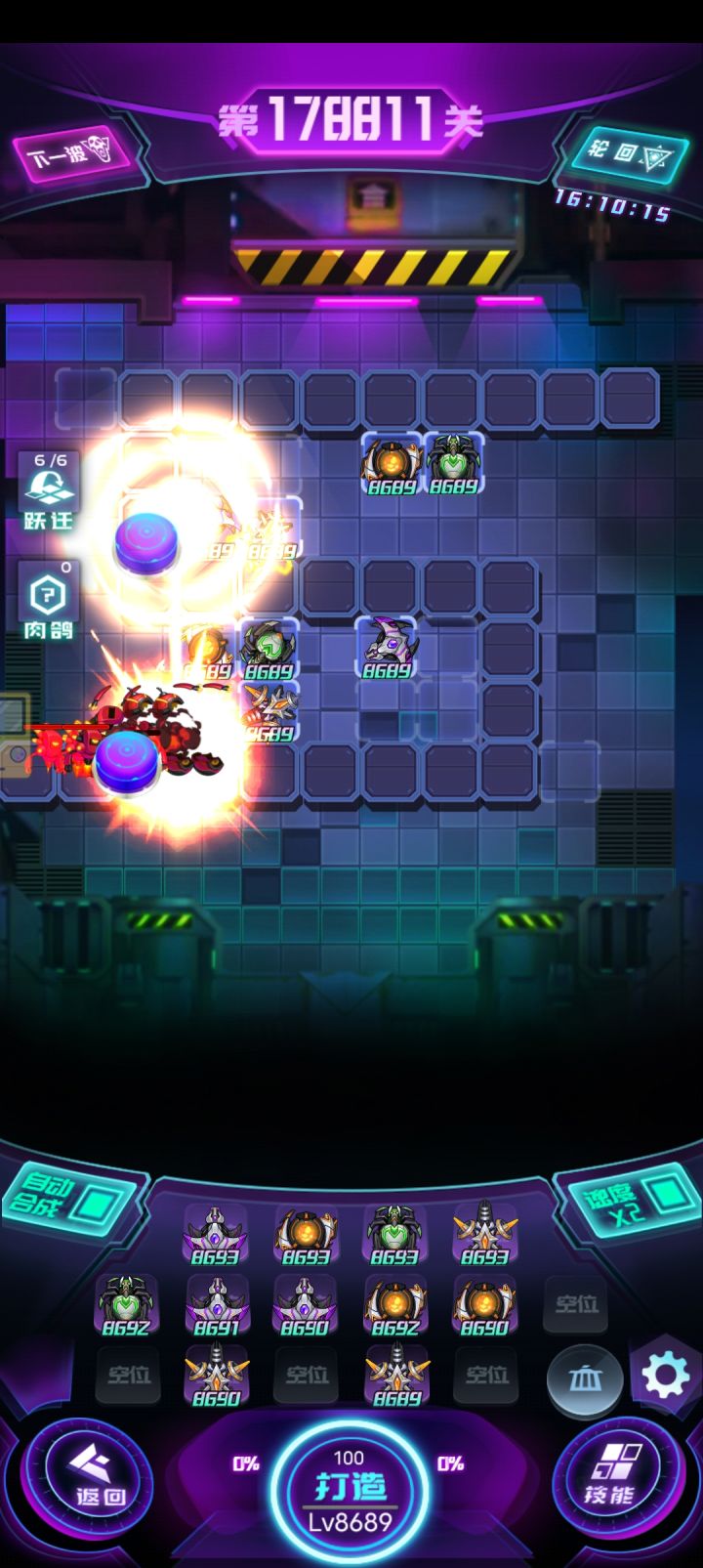 ID:79892 叛军阵容:钉刺,骇客,双子座β,冰冻,主C钉刺,全9星拉满,打无尽,8座辅助塔,范围内减当前怪物最高生命比。大大的减少怪物血量上限。技能上把过载给主C,其他技能不重要,目前双子座β9星技能没修复,修复更加猛。如图,轻轻松松打AA