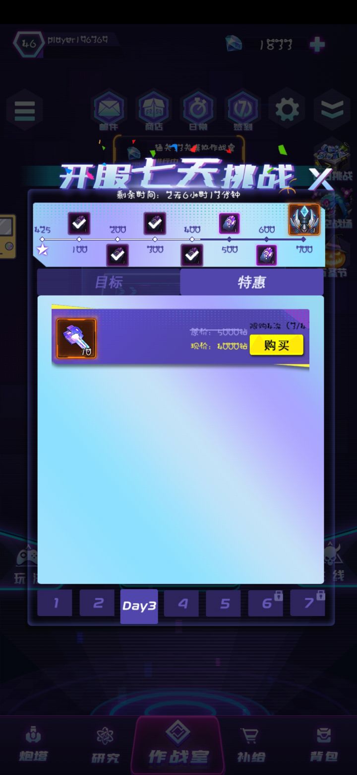通过轮回加成就可以快速积攒钻石,但是不要迁越,然后在通过开服七天挑战买钥匙去开箱子,箱子最好来一次限时就行,一次10连就可以出一个金色炮塔,然后去做模你站,上面是最简单的,如图所示。#游戏种草计划
