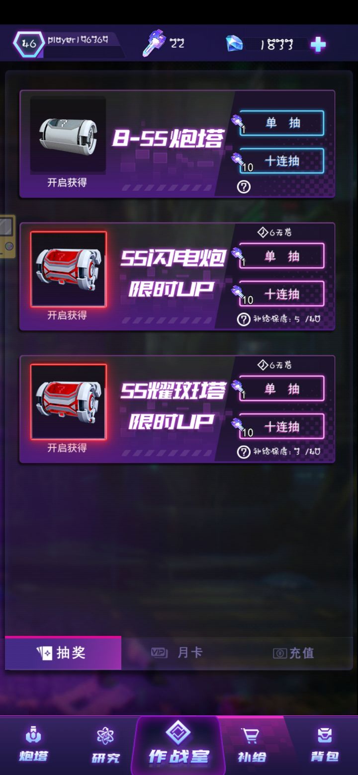 哈喽大家好这里是泡泡~今天呢~小泡泡就给大家带来了一篇一看就会,实践也不废的新手攻略~ 一、有钻石前期可以先抽非up塔池,抽一到两个ss品质的就可以停手,这样可以保证前期的炮塔输出够用不会卡关,(而且前期有神秘力量加持哦~)。二、每当我们缺钻石的时候可以点开邮件看看有没有,然后可以看看成就,成就可是一个获得钻石的好地方,其次无尽关卡,每60关就可以获得钻石+无尽关卡内右上角随机触发的的赛博