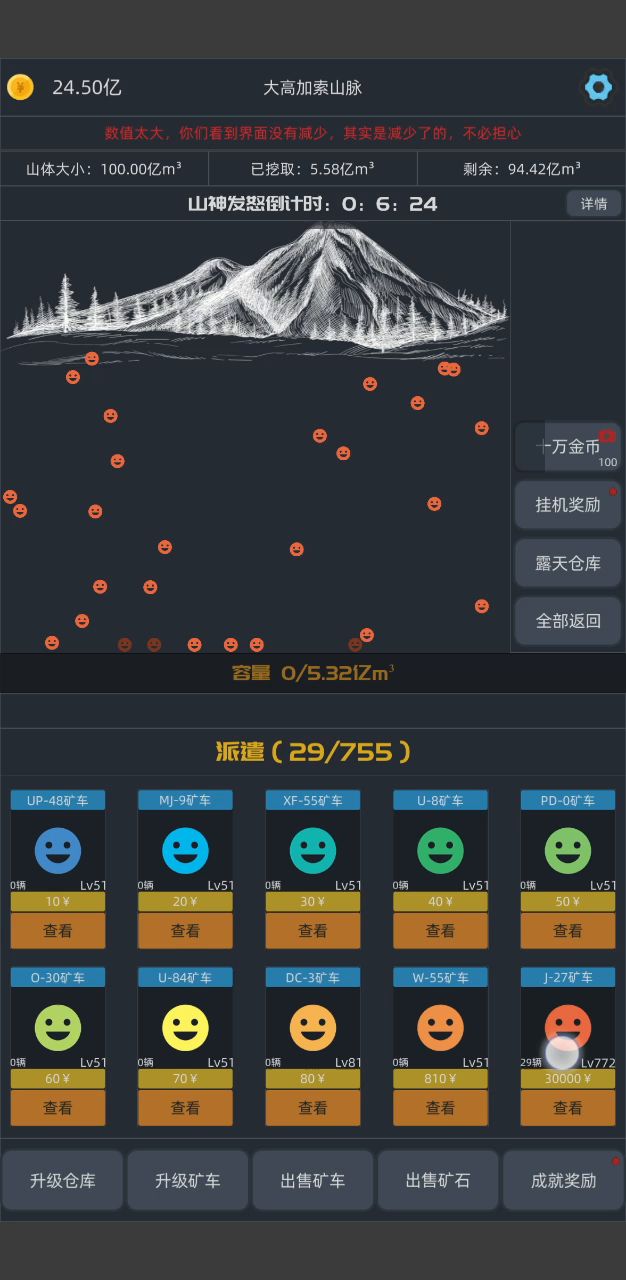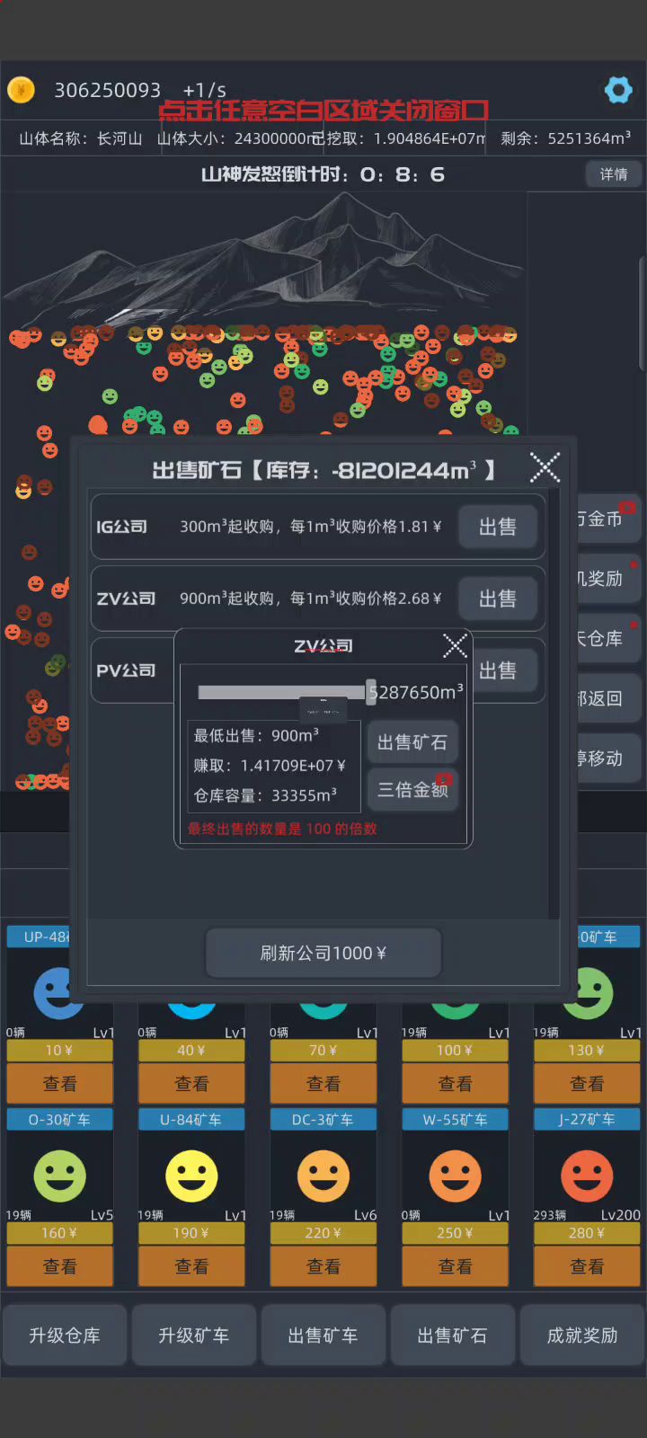我在卖矿的时候,快速点击打开卖矿的页面,导致卡一下出现多个卖矿页面,然后就可以无限卖矿了刷钱了,卖矿的时候显示矿物为负数,退出重进矿物归零,但是卖矿的钱还在……建议修复