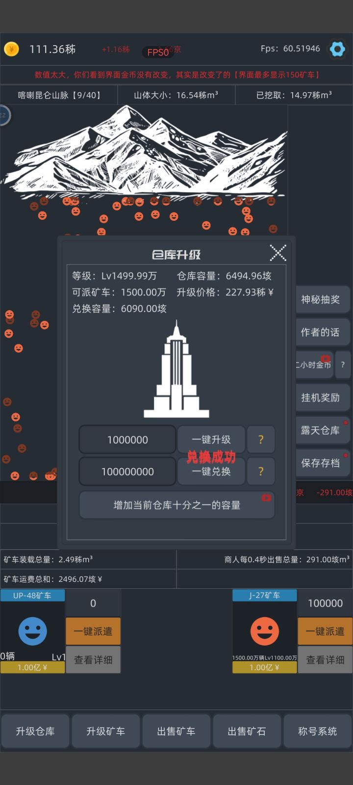 矿仓容量没次升级的上限可以在加一下,现在拉到最满点一下加0.01,开连点器点了半天一共才26.多,还有矿仓容量升级后没反应,得重进矿仓容量才能刷新