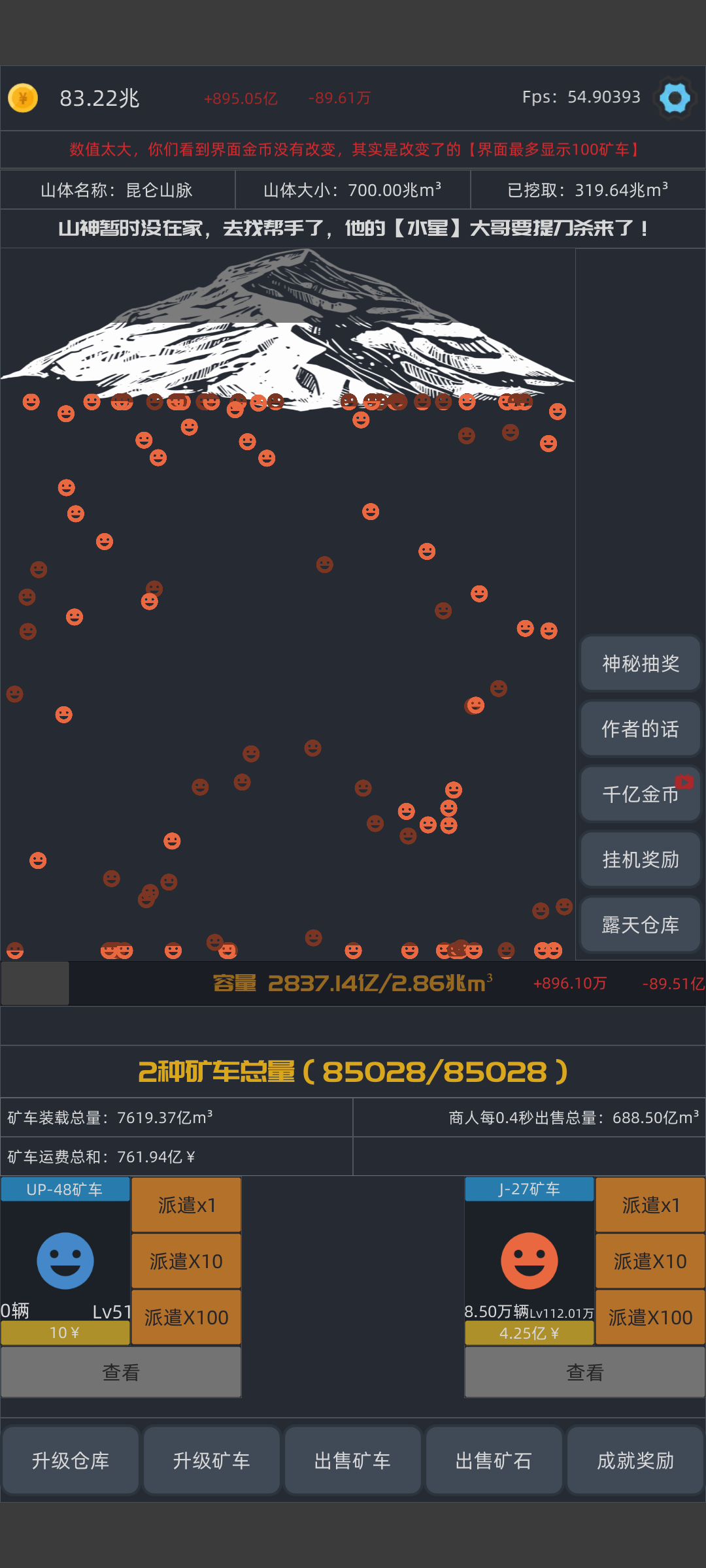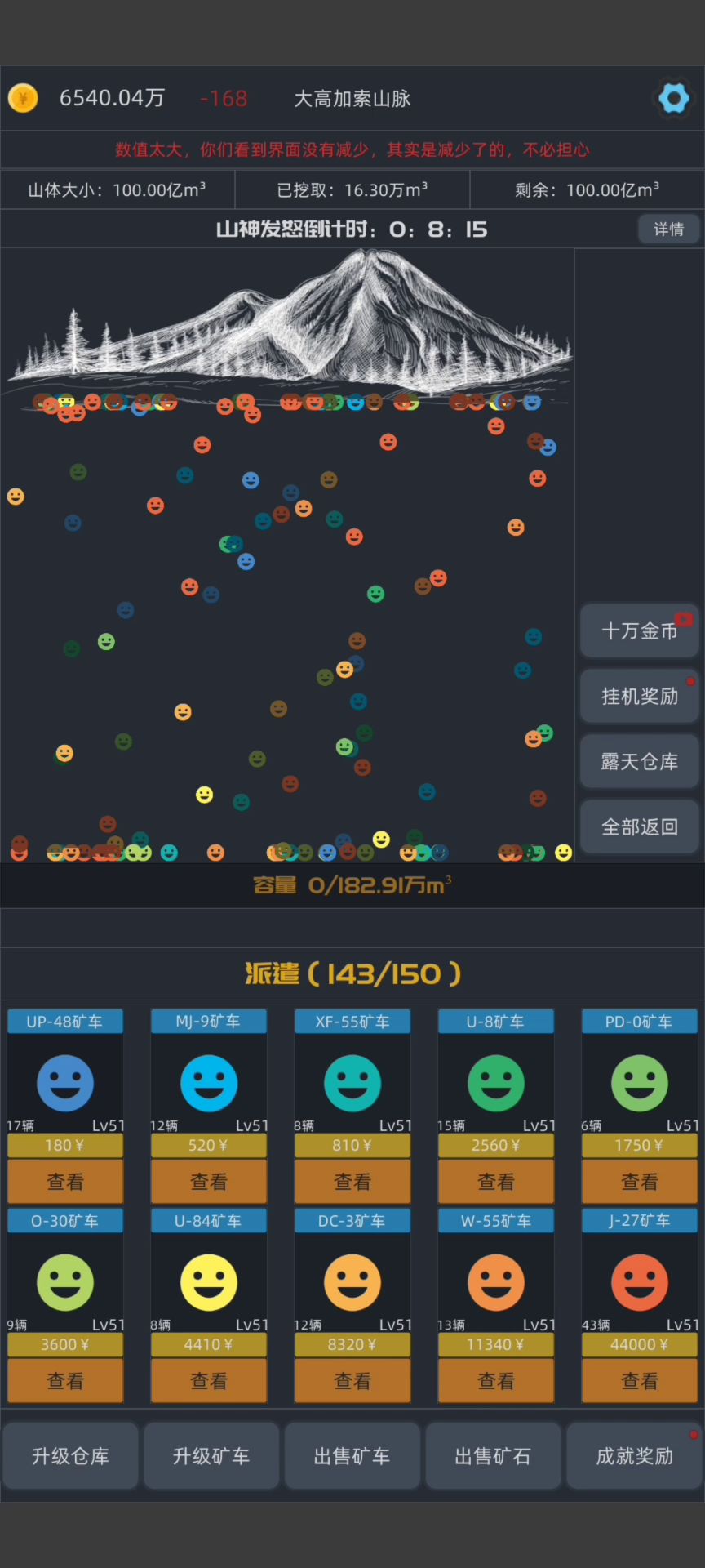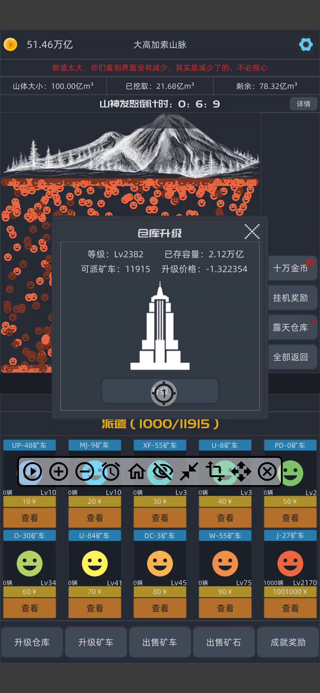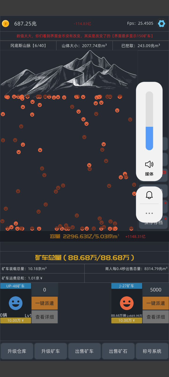 作者,我688亿没0.4秒出售,1个是20快,应该是0.4秒13700亿左右,但是我钱大概是6800亿左右。 一兆是1万亿,我应该是一下跳1.3兆左右啊,就算有矿车和商人消耗,但也不可能一下消耗6000亿啊,作者修复一下这个bug啊